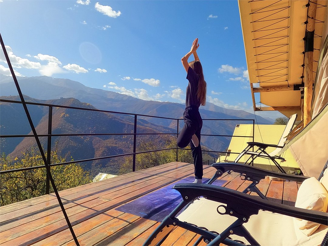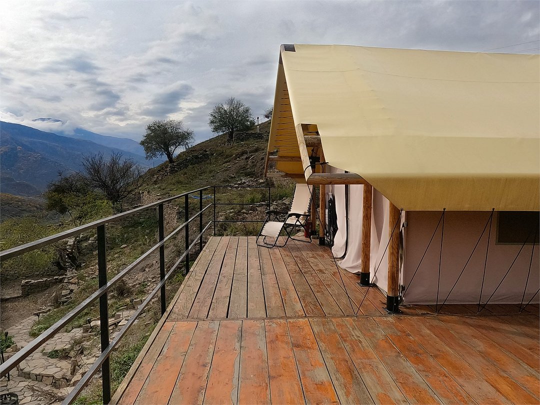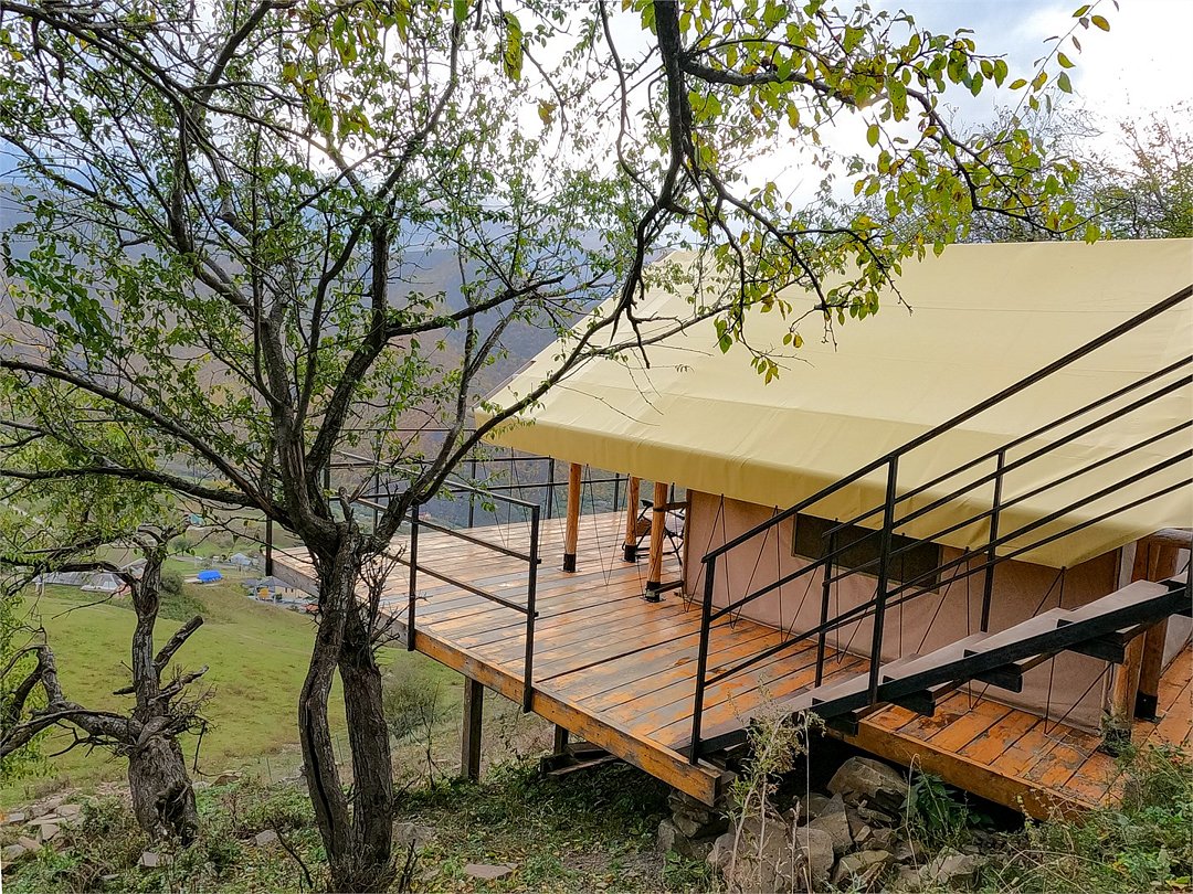Вас ждет захватывающий вид на горную долину, обогреваемые шатры для комфортного сна в любую погоду, банный чан под открытым небом и Чайный дом с вкуснейшими домашними угощениями.