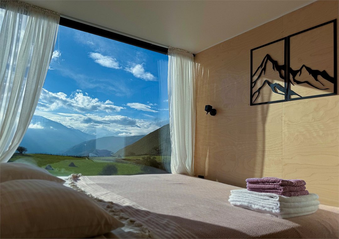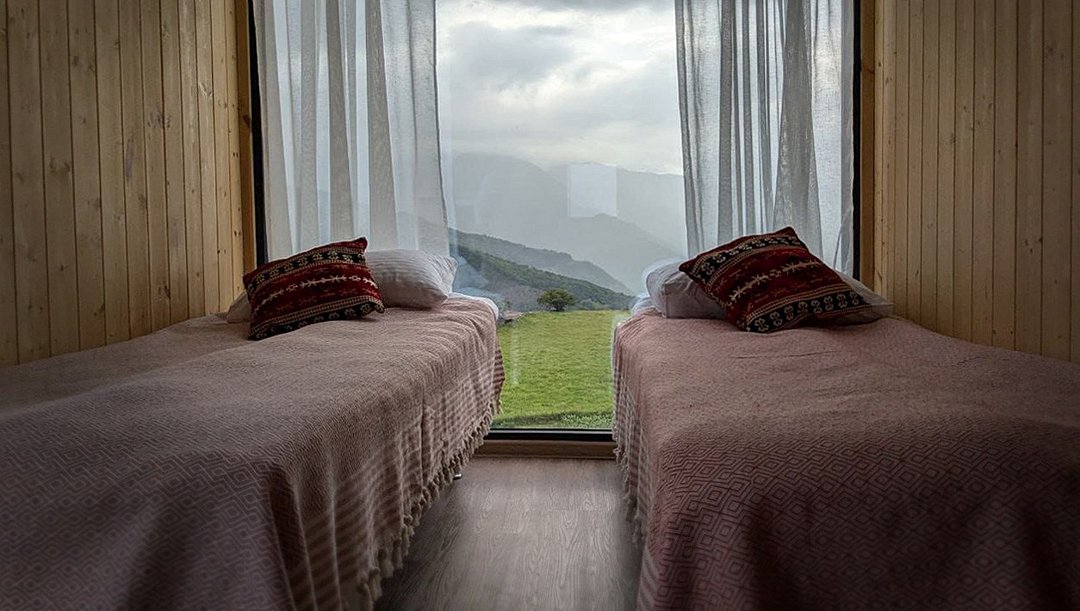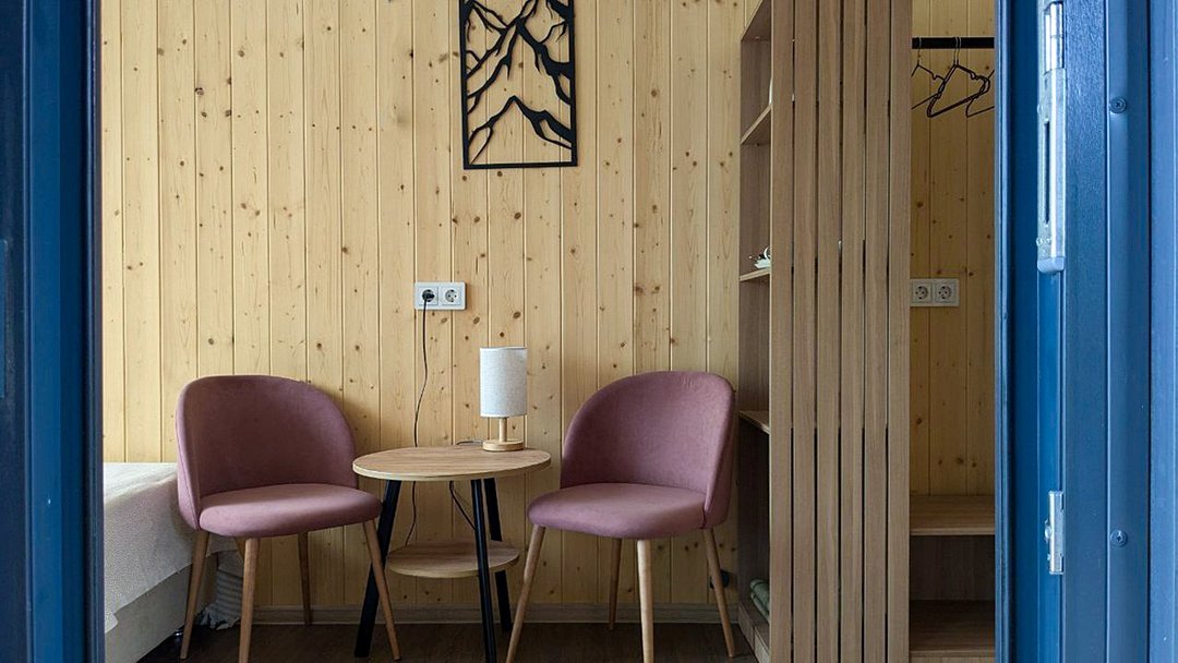 Chechen Village - так называется вторая территория глэмпинга. Если первая территория - это шатры, то СV - домики со всеми удобствами внутри и роскошным видом на горную гряду. Третий номер расположен на первом этаже. Выход из номера на уютная площадку для отдыха и чаепития. В жару здесь приятная тень. Площадка общая для двух номеров - третьего и четвертого. Внутри номера две односпальные кровати. Ванная комната с душем и туалетом. Из крана течет родниковая вода. Приятная мелочь - предусмотрено большое количество розеток для зарядки ваших гаджетов и аккумуляторов. Номер абсолютно новый, запущен в эксплуатацию в середине июня. Важно! Территория вокруг в процессе благоустройства, поэтому сейчас есть замечательная возможность жить в ChV по тестовой стоимости. Завтрак в верхнем глэмпинге Берег неба (идти пешком 5-7 минут).Услуги и удобства