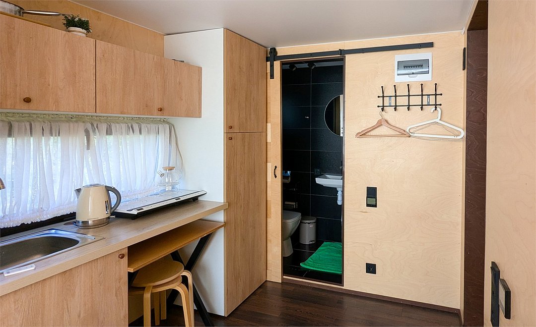 Мини-апартаменты с компактной кухней. Комфортно для размещения втроём. Если у вас двое детей - ночевать достаточно удобно благодаря широкой кровати 160х200 и выдвижной кровати 90х200. При необходимости можно добавить четвертое спальное место (услуга за дополнительную плату). Chechen Village - так называется вторая территория глэмпинга. Если первая территория - это шатры, то СV - домики со всеми удобствами внутри. Душ и туалет в номере, панели управления теплыми полами расположены на удобной высоте. Мангал включён в стоимость размещения. Можно заказать завтраки заранее, за доплату - подаём завтраки в верхнем глэмпинге, в Чайном доме. Завтраки не включены в стоимость размещения. Важно! Благоустройство территории в процессе, нет дорожек. Поэтому размещение на данный момент - по тестовой стоимости.Услуги и удобства