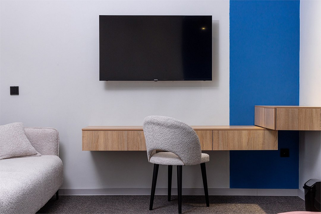 телевизор, Wi-Fi, система климат-контроля, светильник, фен, система безопасности, электронные замки, ванная комната, душевая кабина, санузел, халаты, банные полотенца, тапочки, двуспальная кровать, гладильная доска, диван, тумбы, шкаф для одежды, гардеробная, вешалки, письменный стол, багажная тумба, зеркало, ковер, звуконепроницаемые стены и окна, письменные принадлежности, чайный набор, обслуживание номеров, сейф, чайник, унитаз, раковина, косметическое зеркало, питьевая вода, ковровое покрытие, отопление, вид на город, кабинет, вид во двор, столовые приборы, стул, цифровое тв, внутренний телефон, мини-холодильник, гостиничная парфюмерия, телевизор со Smart TV, онлайн-регистрация до заезда, фитнес-зона, чайная станция, уборка номера, набор для приготовления чая и кофе, услуги прачечной (платно), туалетные принадлежности премиум-класса, вешалки-плечики, бутилированная вода, мыло, прачечная (за дополнительную плату), еда на вынос (за дополнительную плату), комната для переговоров (за дополнительную плату), онлайн-регистрация, без питомцев, часы-будильникВ номере