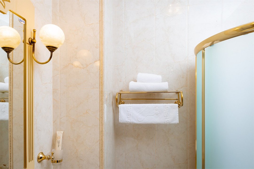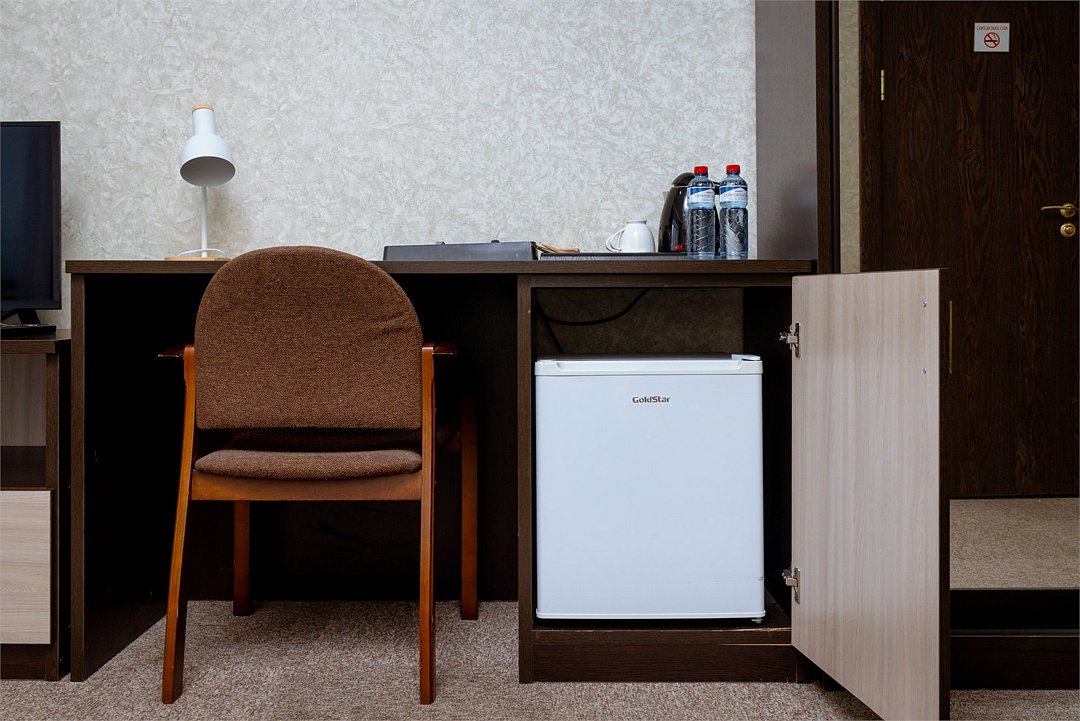 В номерах категории Стандарт возможно одноместное или двухместное размещение . Вы оцените высокие потолки, классический интерьер, все технологические удобства, которые должны быть в четырехзвёздочном отеле. Здесь вас ждёт комфортабельная обстановка, обеспечивающая полноценный отдых и возможность эффективной и плодотворной работы.Услуги и удобства