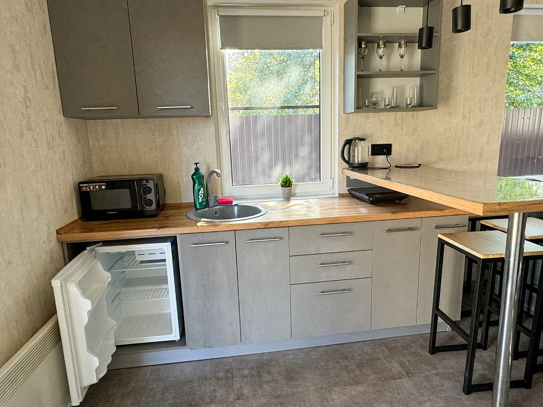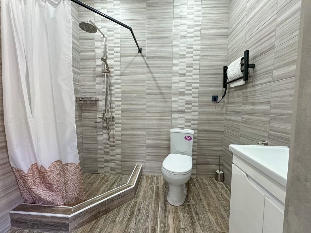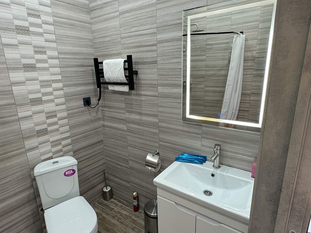В вашем распоряжении будет полностью оборудованная кухня, где вы сможете приготовить любимые блюда, комфортная спальная зона, кондиционер для создания оптимального микроклимата, телевизор для вечернего досуга и собственная ванная комната со всеми удобствами.