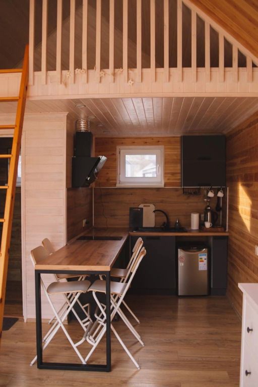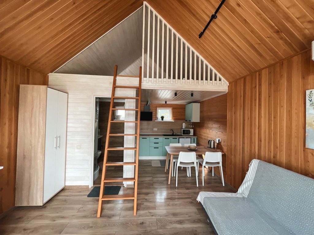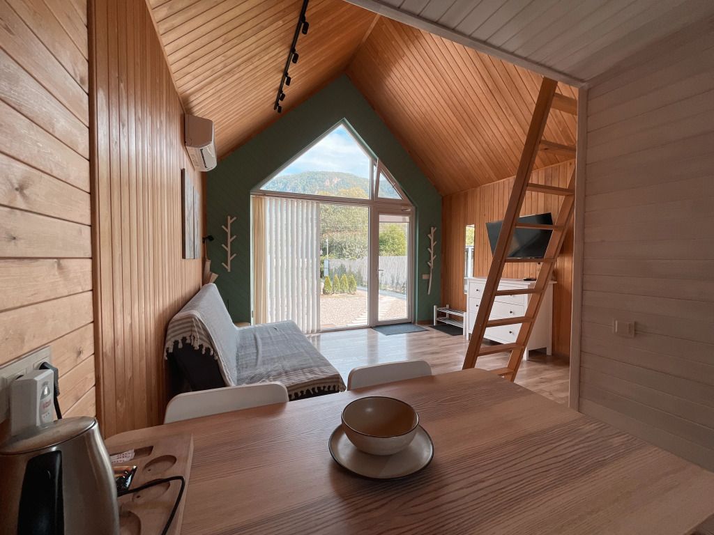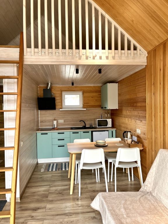 Коттедж оборудован необходимым для проживания на двоих или семью с детьми. Кухня в номере. В коттедже есть: посуда, техника, варочная поверхность, чайник, холодильник, микроволновая печь, санузел с душевой кабиной, мини-косметика для душа. Предоставляется постельное бельё, полотенца, тапочки. Также есть мангал, беседка на территории каждого домика, зона отдыха у костровой чаши, купель фурако (по запросу).