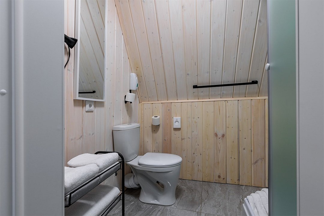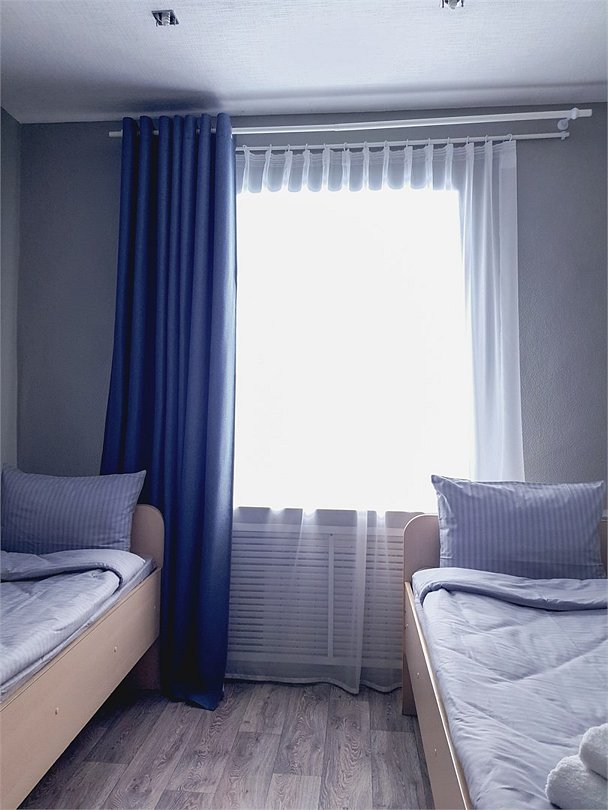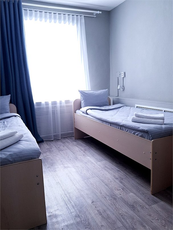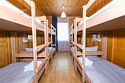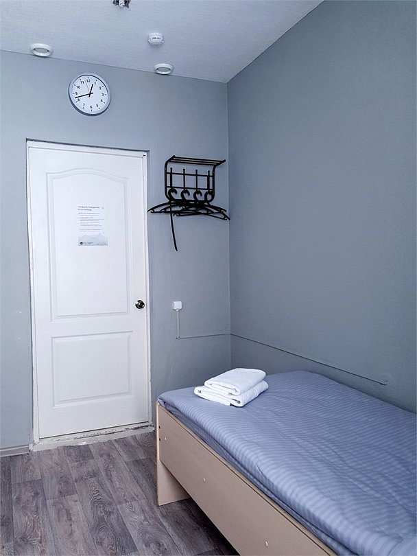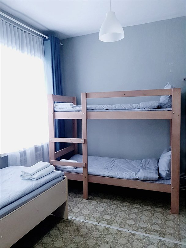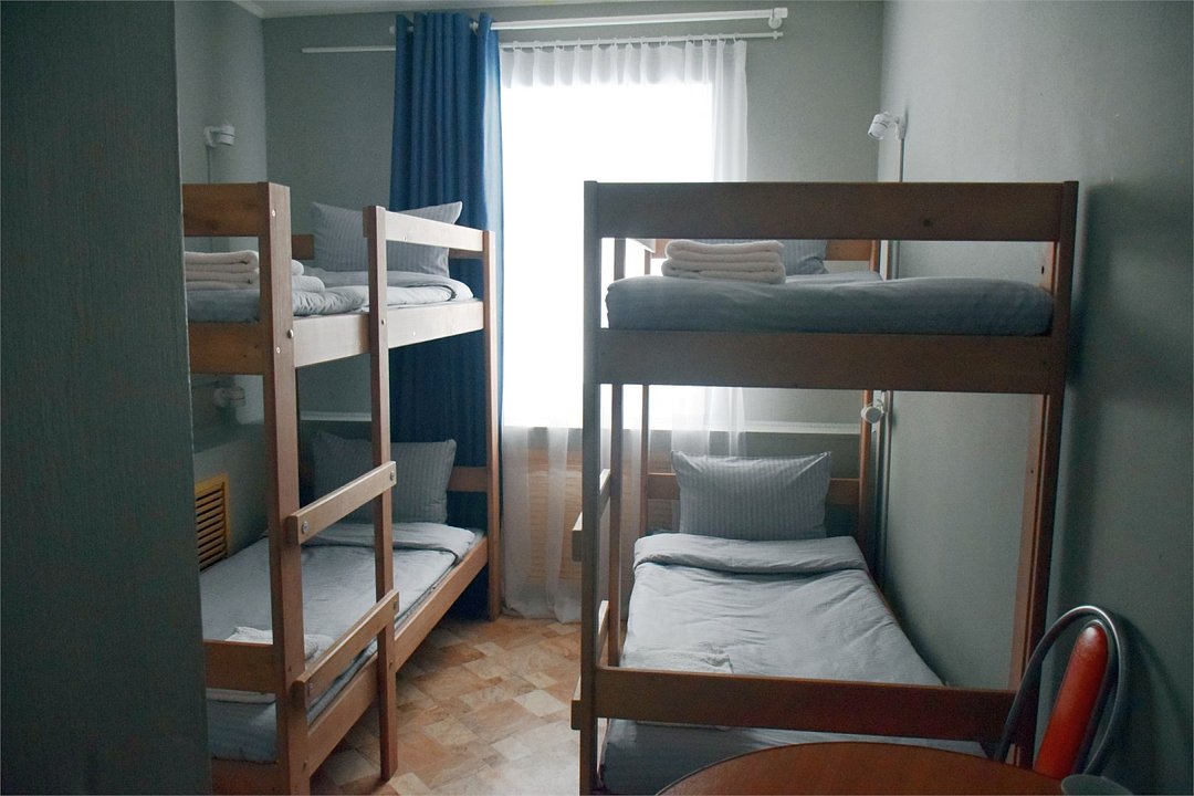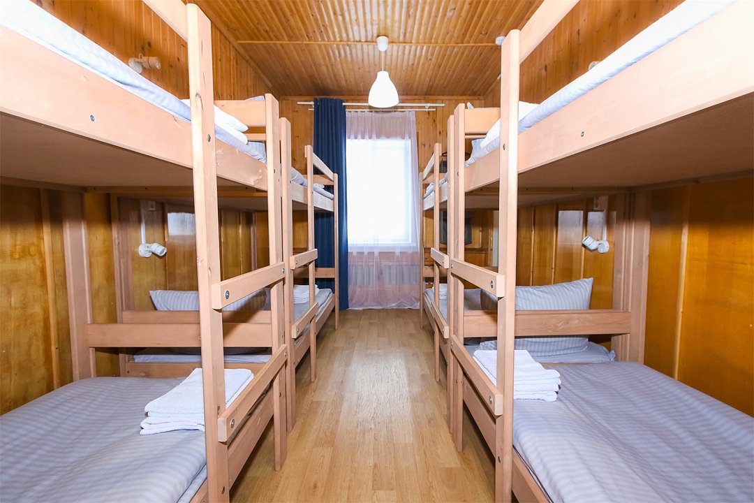 Общий шестиместный номер с тремя двухъярусными кроватями для мужчин и женщин. Также возможен вариант размещения в общем шестиместном номере с двумя односпальными кроватями и двумя двухъярусными кроватями для мужчин и женщин. Общий душ и санузел расположены на этаже.Услуги и удобства
