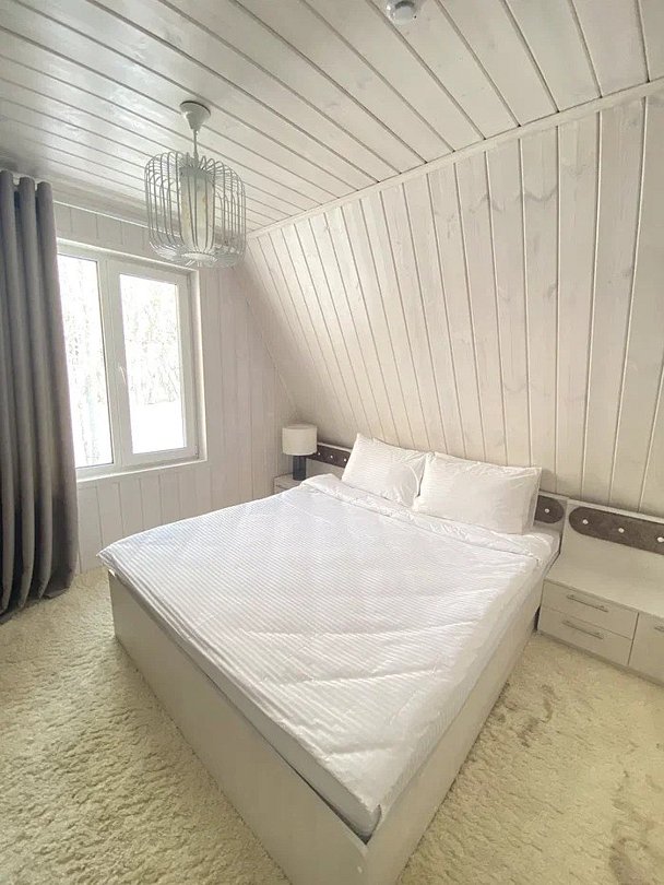 Дом с удобствами рассчитан на восемь человек. Сауна, камин, сушильный шкаф, цифровое телевидение к вашим услугам. На первом уровне дома расположена гостиная, кухонная зона, сауна, спальная зона с двумя односпальными кроватями. В гостиной - раскладной диван для отдыха, который используется как спальное место (2 персоны). На втором уровне размещена спальная зона, в которой расположены двуспальная кровать и две односпальные кровати.Услуги и удобства