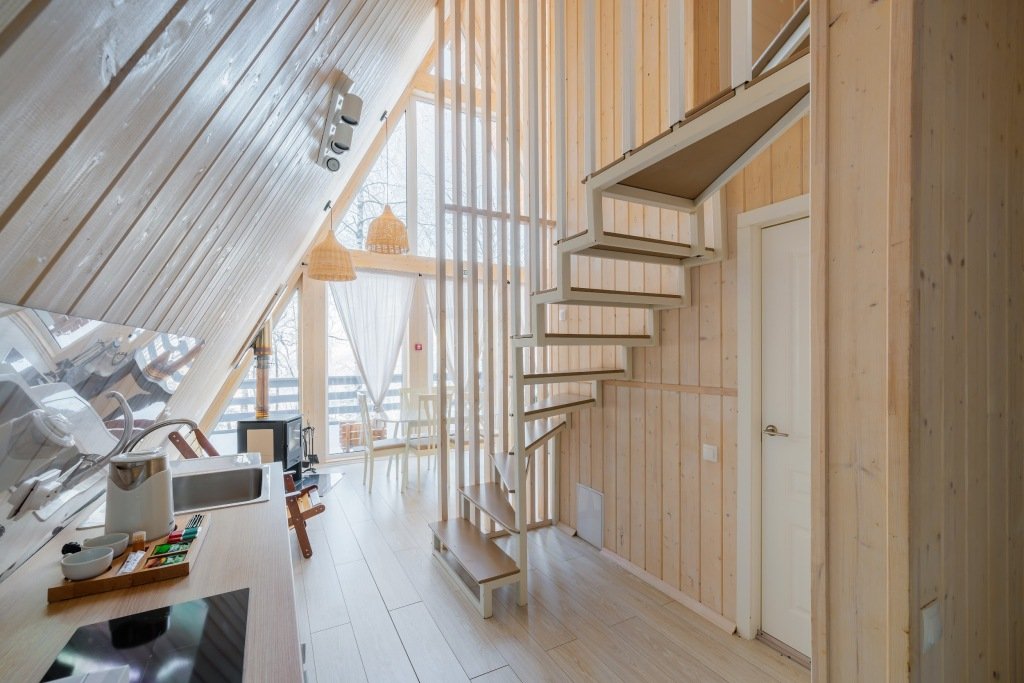 Остановиться вы сможете в одном из уютных домиков-глэмпингов, приятный интерьер, оснащение и чистота которых приятно вас удивят. Также доступны более бюджетные варианты, например, аренда спального места в общем номере.