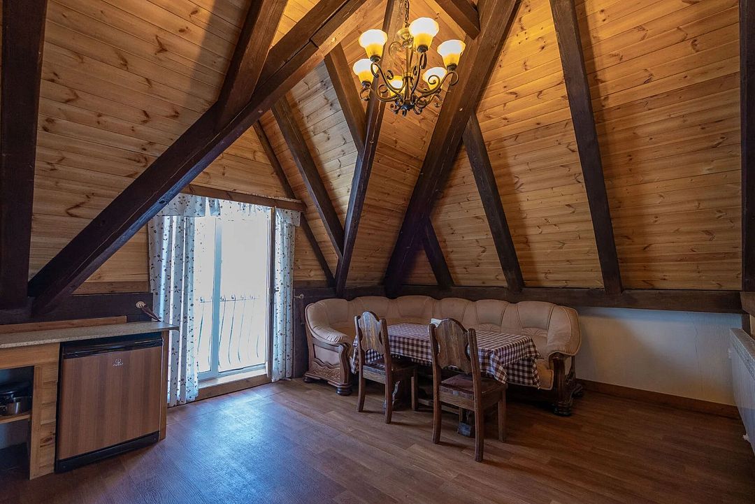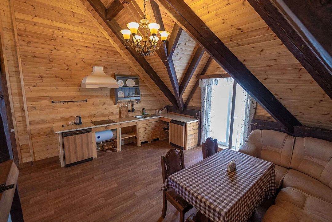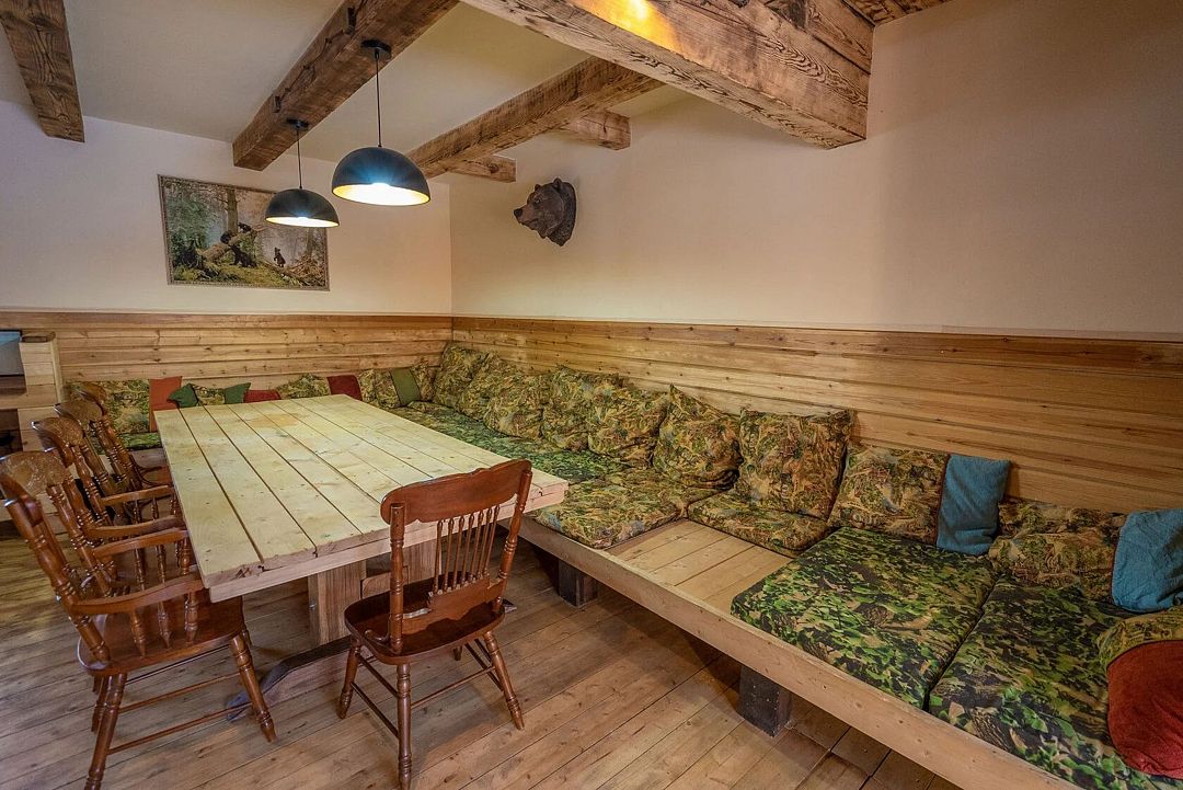 После активного дня на свежем воздухе можно расслабиться в бане или уютной сауне, где созданы комфортные условия для отдыха и восстановления. В зоне отдыха есть все необходимое: телевизор, мини-кухня и обеденная зона, где можно насладиться чаем или лёгкими закусками.