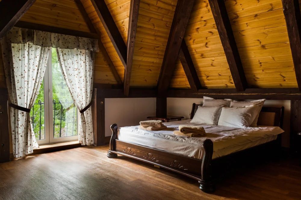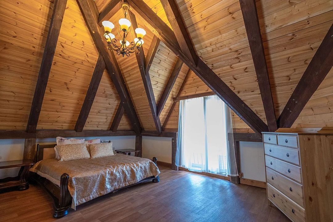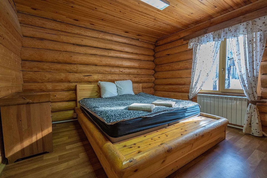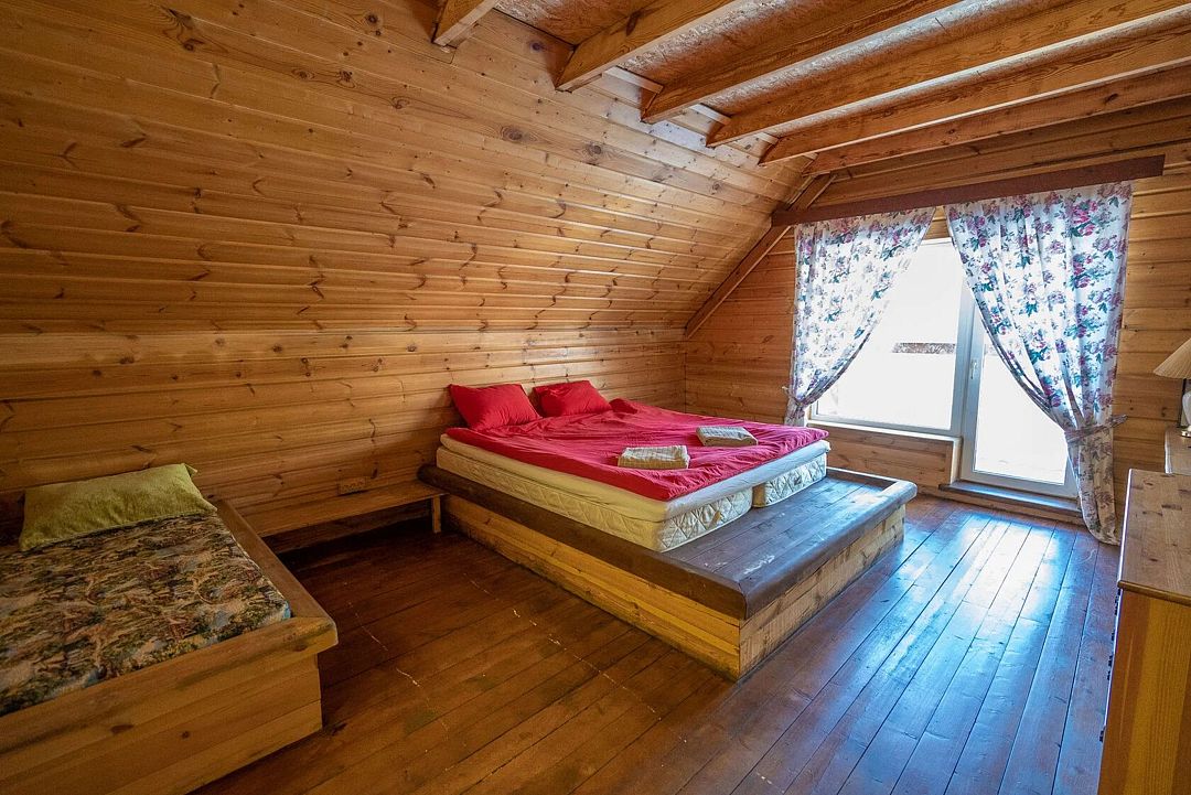 Три двуспальные кроватиВ срубе