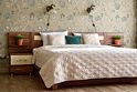 Главный дом: просторная гостиная с камином, полностью оборудованная кухня (посудомойка, кофемашина, духовка, микроволновка), два санузла, четыре изолированные спальни (три с двуспальными кроватями, одна с большим диваном) + два дивана в гостиной.