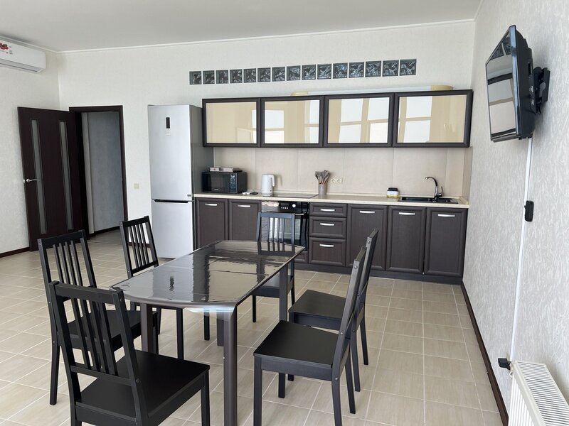 Апартаменты подойдут для группы отдыхающие и включают в себя все необходимые для проживания и отдыха удобства: оборудованную кухню, бесплатный Wi-Fi, санузел, стиральную машину, утюг, фен, бойлер с горячей водой, постельное белье и полотенца, шезлонги на террасе, детскую кроватку, а также мангальную зону.