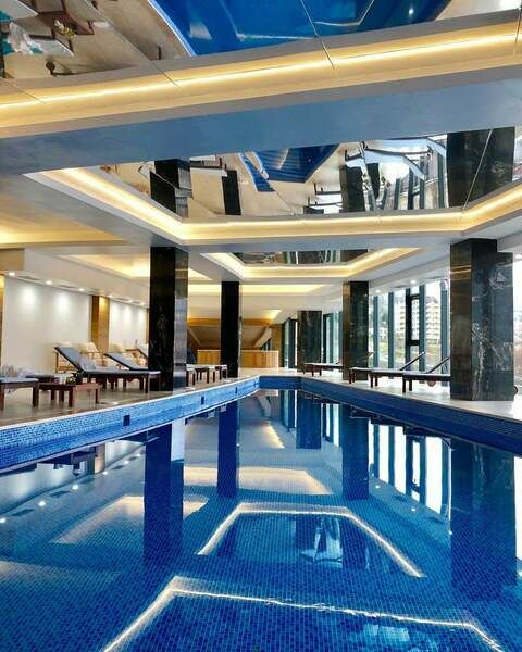 Тип бассейна: крытый бассейнВода в бассейне: подогреваемый бассейнРядом с бассейном: шезлонгиТемпература в бассейне: 27 °CРазмеры: 6.5 x 15 мПлощадь: 97.5 м²Время работы: от 08:00 до 18:30Глубина: 165 смСтоимость