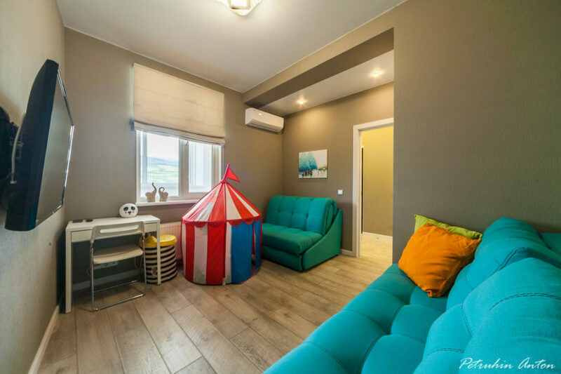 9 этаж. Современные двухкомнатные видовые апартаменты с большой террасой в комплексе Гурзуф Ривьера представляют: одна изолированная спальня, вторая спальня-студио-кухня. Полноценная кухня с полным набором посуды. Сан.узел со стиральной машинкой. Большая видовая терраса с необходимой мебелью, где можно завтракать, обедать, ужинать и наслаждаться видом на Медведь гору, скалы Адалары и черное море. В апартаментах с комфортом может разместиться до 4 человек.