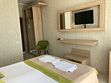 Однокомнатный номер площадью 15-20 кв. м для размещения 2 человек на основных местах. В номере: кондиционер, двуспальная кровать, прикроватные тумбочки, гардероб, зеркало, чайная станция, телефон, телевизор, Wi-Fi, без окон. Ванная комната с бодрящим душем и банными принадлежностями.
