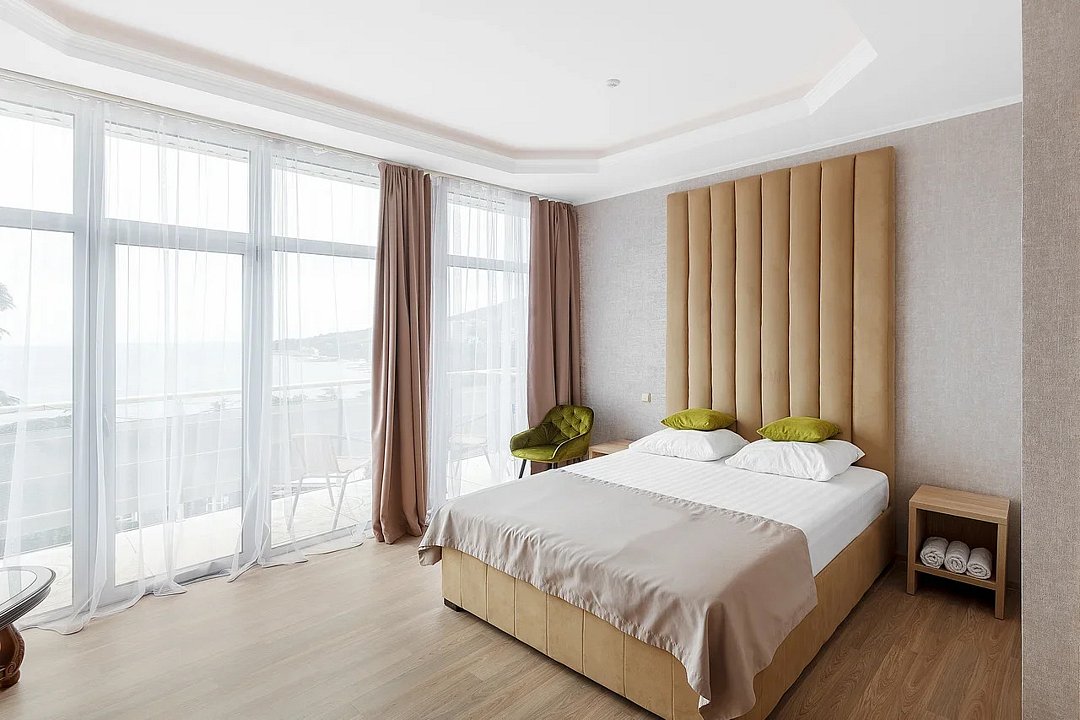 Для проживания гостей предлагаются комфортабельные номера различных категорий. В числе удобств каждого номера телевизор с кабельными каналами, удобные спальные места и свежее постельное белье, санузел с душем и туалетно-косметическими принадлежностями, кондиционер и бесплатный Wi-Fi. В южных номерах есть открытый балкон с панорамным видом на гору Медведь, скалы Адалары, море.