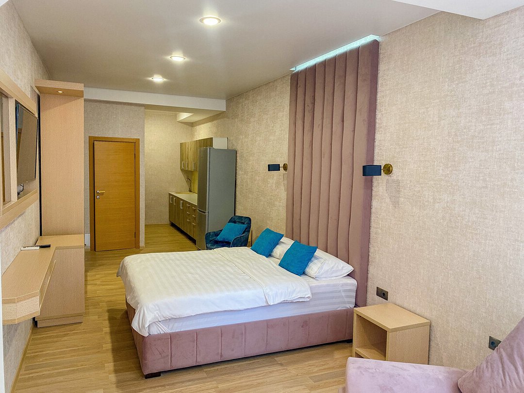 Классический однокомнатный номер с выходом на балкон. Выполненный в уютном продуманном интерьере для двухместного размещения с возможностью предоставления дополнительного места . В каждом номере имеется спальная зона с удобной двуспальной кроватью, чайным набором, плазменный телевизор, мини-холодильник, вода, чай и кофе. Ванная комната с бодрящим душем и банными принадлежностями. Средняя площадь номера 23 кв.м.