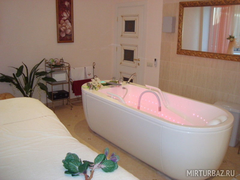 Идеальный выбор отдыха в семейном кругу или с друзьями. Вам предложат уникальные оздоровительные программы, вы сможете посетить спа-центр, плавательный и соляной бассейны, тренажерный зал, косметологический кабинет, финскую, турецкую и биосауны, русские и римские бани. В небольшом уютном ресторане вы можете отведать изысканные блюда средиземноморской и европейской кухни. Спа-отель – это изысканный отдых именно для вас и ваших близких!