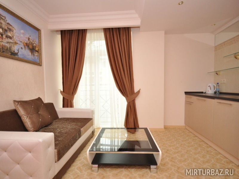 Фешенебельные номера. Угловое месторасположение этих номеров создает панорамный вид и на горы, и на побережье. Номера с балконами, есть возможность предоставления третьего дополнительного места.