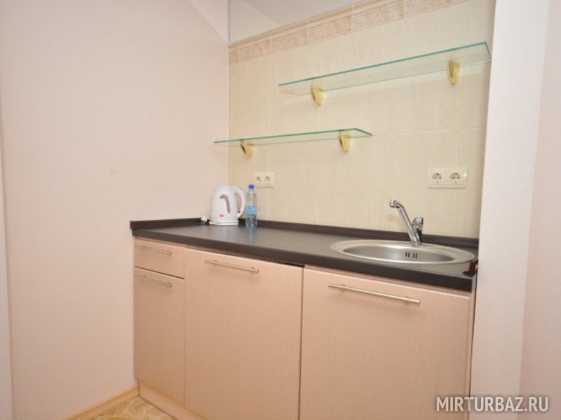 Просторные однокомнатные номера не с видом на море и без балкона. В номерах двуспальная кровать, в трех номерах из семи есть раскладывающиеся диваны.
