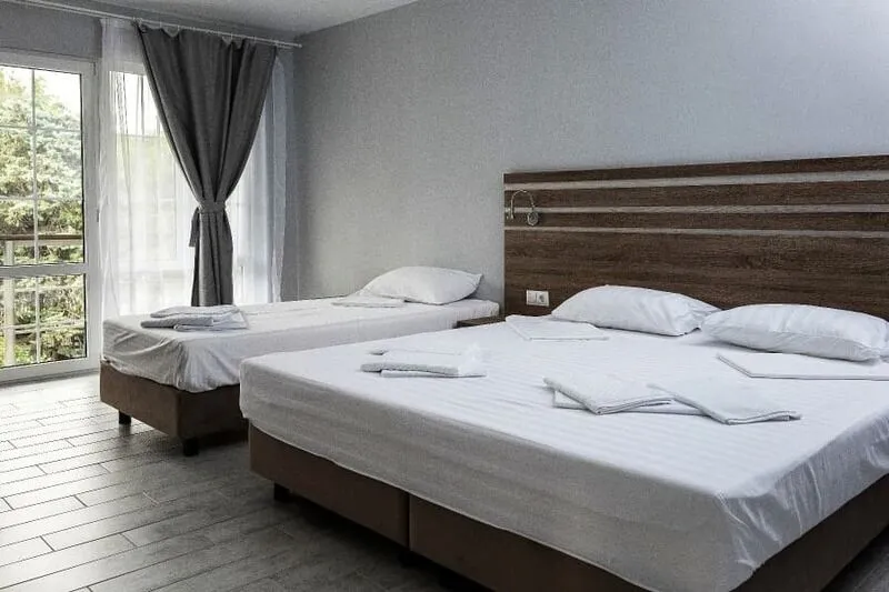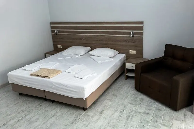 Семейный отдыхДостоинстваЧистая комната, с удобными кроватями. Территория тихая, чистая, постороннего шума нет, до пляжа хоть и с горки недалеко и не напряжно. хозяевы приветливы