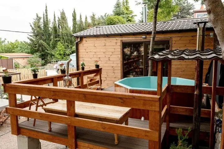 После парилки можно освежиться в стоящей на улице купели с холодной или подогретой водой.