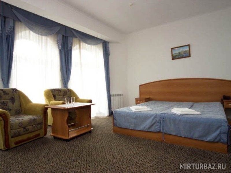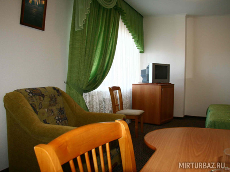 Номер укомплектован комфортной мебелью, кондиционером, телевизором со спутниковым телевидением, холодильником, телефоном, санузлом с душевой кабиной.