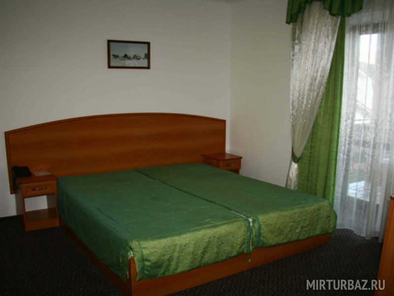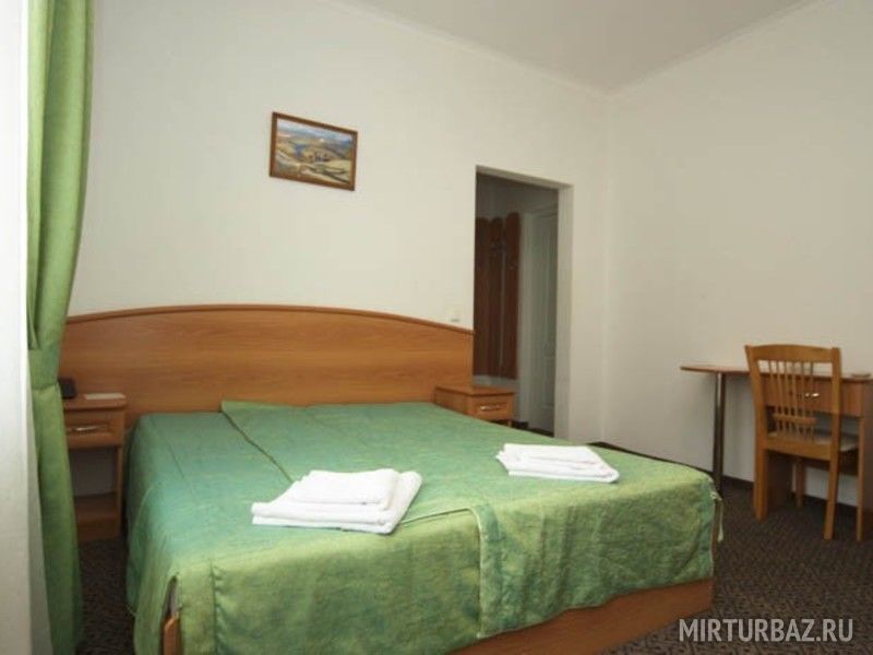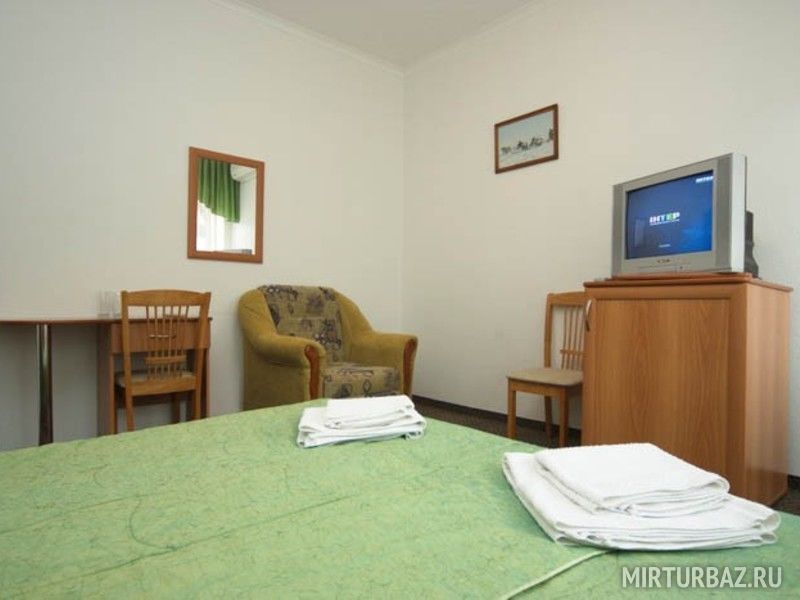 Номер состоит из одной комнаты и санузла. В номере имеется отличная мебель, кондиционер, телевизор со спутниковым телевидением, холодильник, телефон, душевая.