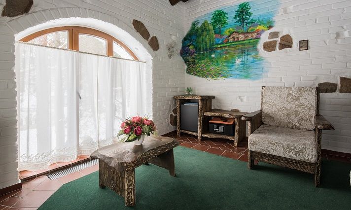 В живописном месте нашего парк-отеля находится Гостевой домик, где Вы с полной уверенностью сможете укрыться от посторонних глаз, насладиться тишиной, уютом. Дровяной камин придаст особую атмосферу неги, тепла, комфорта, а большая кованая кровать позволит Вам погрузиться в мягкий и приятный сон. Дополнит общую картину Вашего отдыха просторная ванна джакузи, где тысячи пузырьков массажем пройдутся по Вашему телу.Услуги и удобства