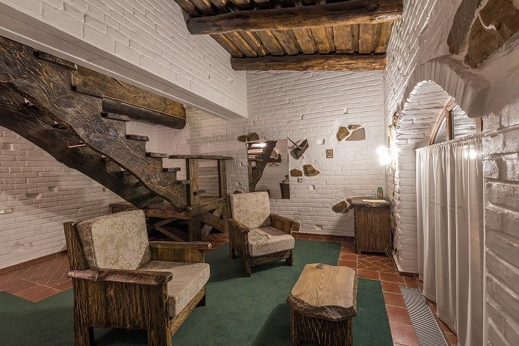 Порадует Вас удобство и комфорт Чудо бани, необычные, но интересные решения в дизайне и интерьере. Рядом с парной — купель с прохладной водой, куда так приятно окунуть разгоряченное веником тело; деревянная лестница, ведущая под самую крышу, на сеновал, наполненный запахом скошенной травы… Во дворе Чудо бани Вас ждет еще одна купель: в окружении сосен, на свежем воздухе в чане, выложенном камнем, подогреваемом огнем, так приятно понежиться, расслабиться и просто забыть обо всем остальном мире… В просторной гостиной бани за богатым столом в окружении своих друзей время пролетит просто незаметно за чашкой душистого чая да бесед веселых.