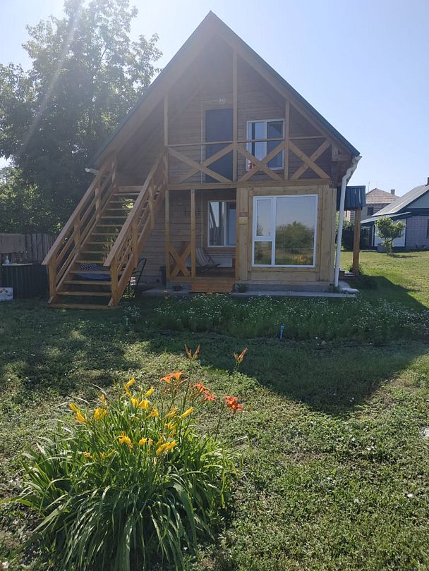 Первый этаж с полностью оборудованной кухней, телевизором, ванной комнатой со всеми удобствами. Второй этаж оборудован спальными местами, телевизором, уютным уголком для обедов с холодильником и чайником. Со второго этажа открывается панорамный вид на дикое озеро и незабываемые закаты.