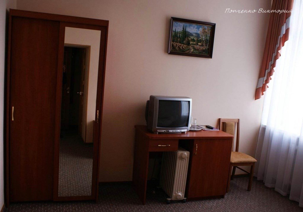 Этот номер сочетает в себе комфорт и уют. Из его окон открывается вид на главную площадь города и набережную реки Писса. Две односпальные кровати Гарнитурная мебель Телевизор Телефон Холодильник Душевая комната Махровые полотенца Фен Набор личных принадлежностейДвухместный номер первой категории Комфорт