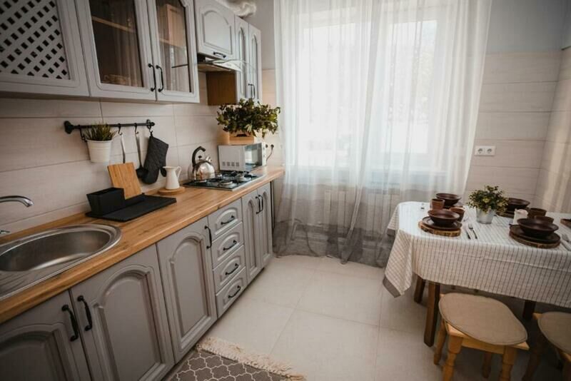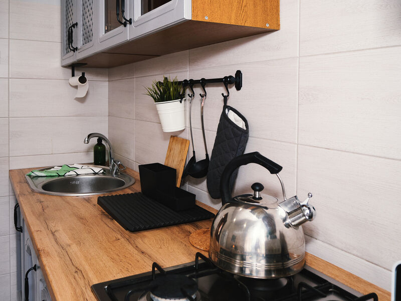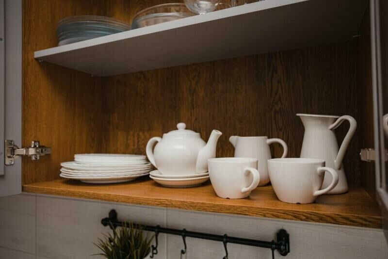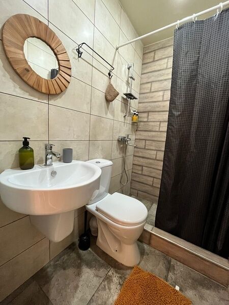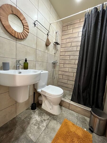 полностью оборудованная посудой и техникой. Душ, туалет.