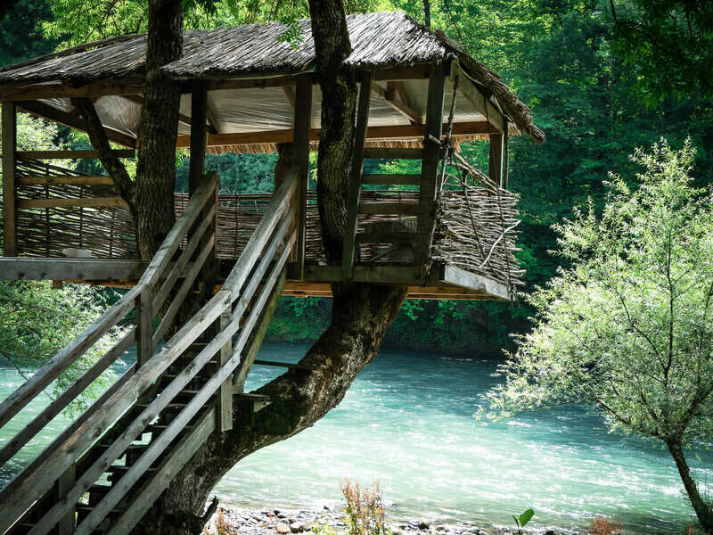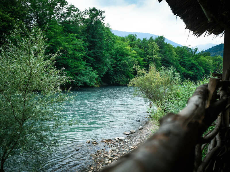 Выход к реке с беседкой прямо у воды, где можно погрузиться в мир спокойствия и умиротворения.