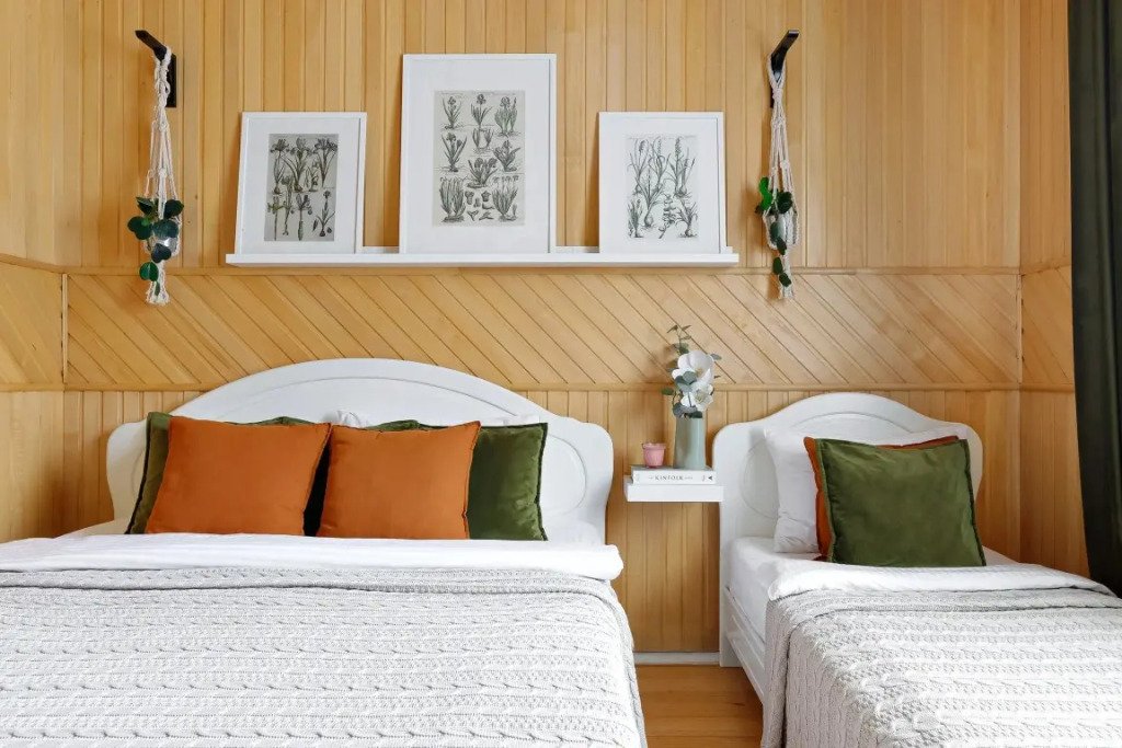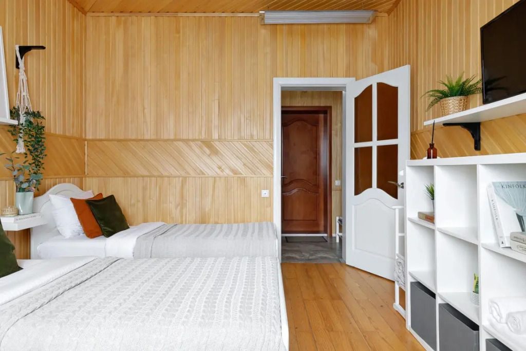 Трехместный номер категории Стандарт. Три раздельные односпальные кровати. Отдельный вход с улицы. В номере есть все необходимое для комфортного проживания (постельное, полотенца, гигиенические