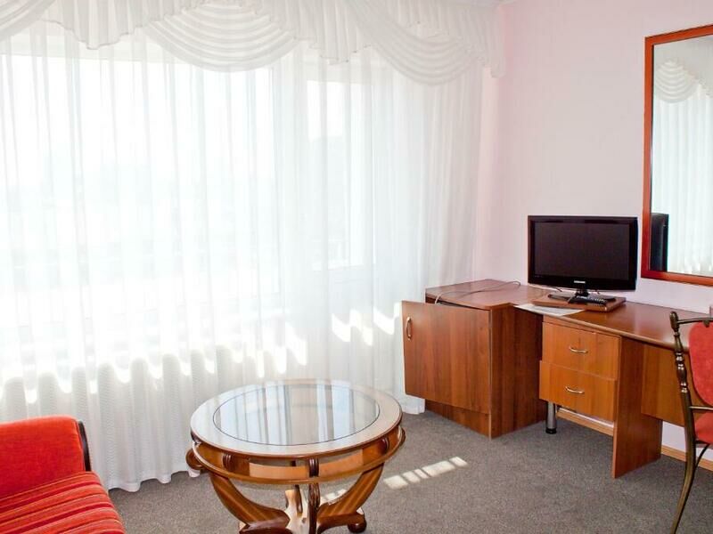 Восьмиэтажный корпус отеля разместился на пересечении улицы Синельникова с главной магистралью района — улицей Карла Маркса. Жилой фонд отеля состоит из 195 номеров разного уровня комфорта — от Эконома до Люкса. Светлые просторные номера оснащены санузлом с душем или ванной. В каждой комнате есть удобный спальный гарнитур, телевизор и мини-холодильник.
