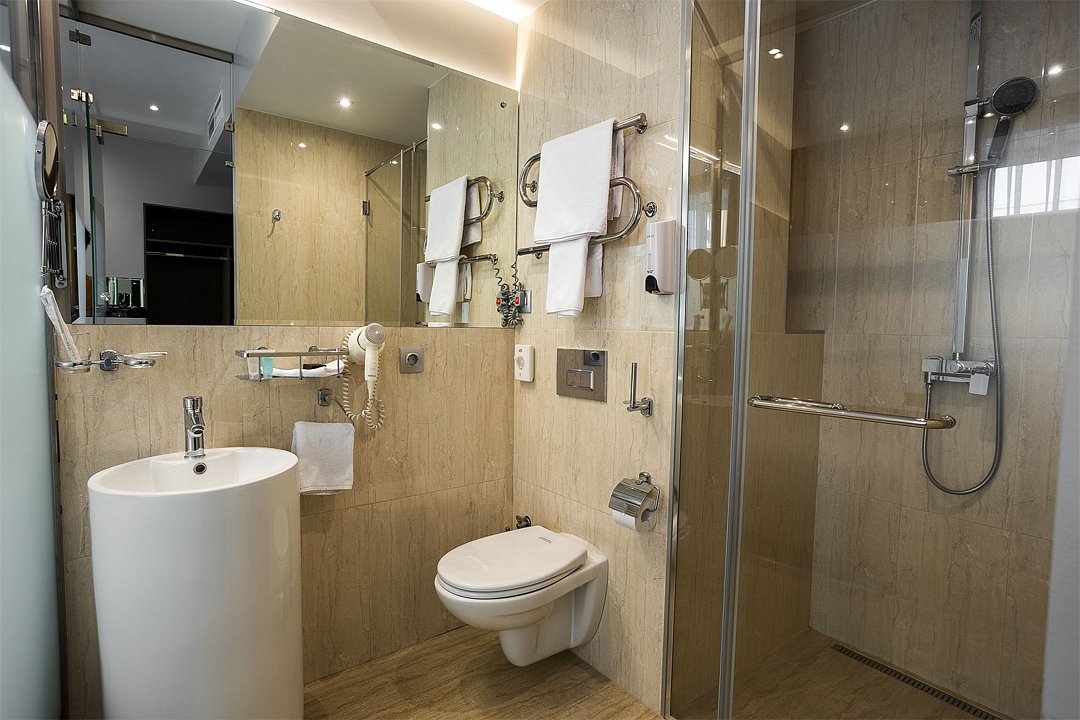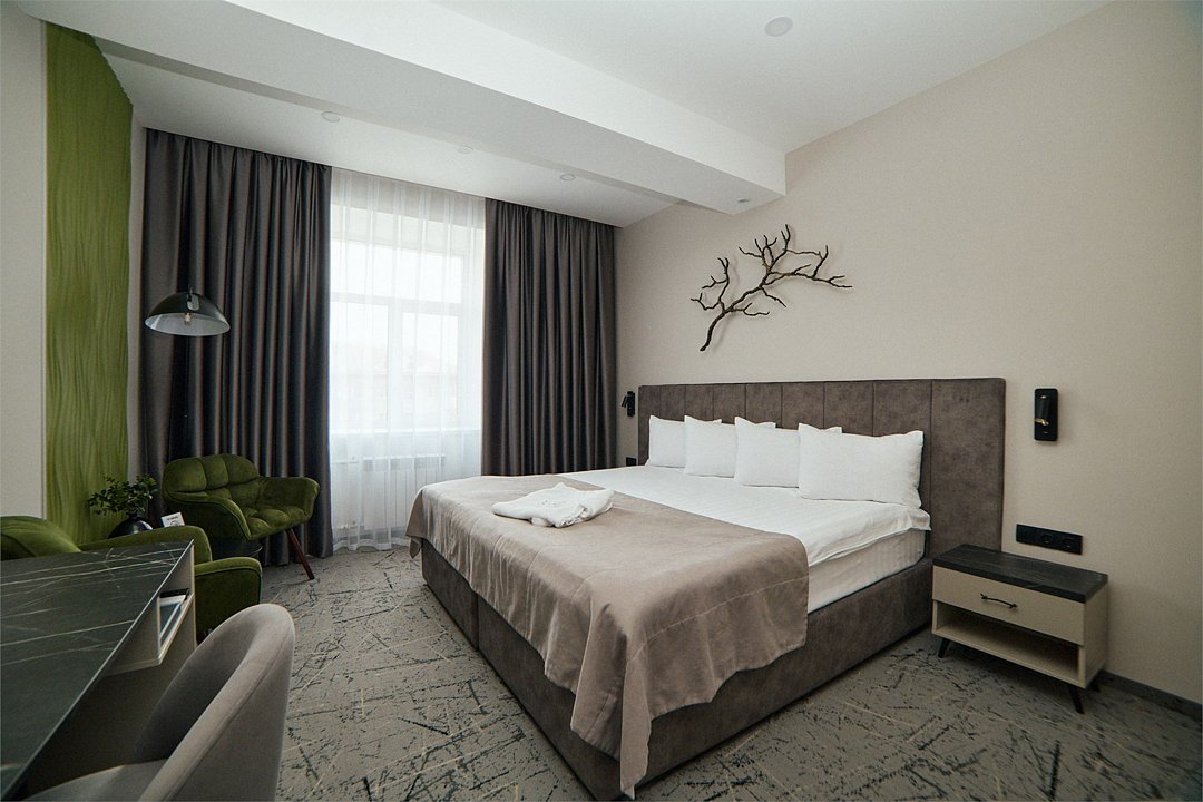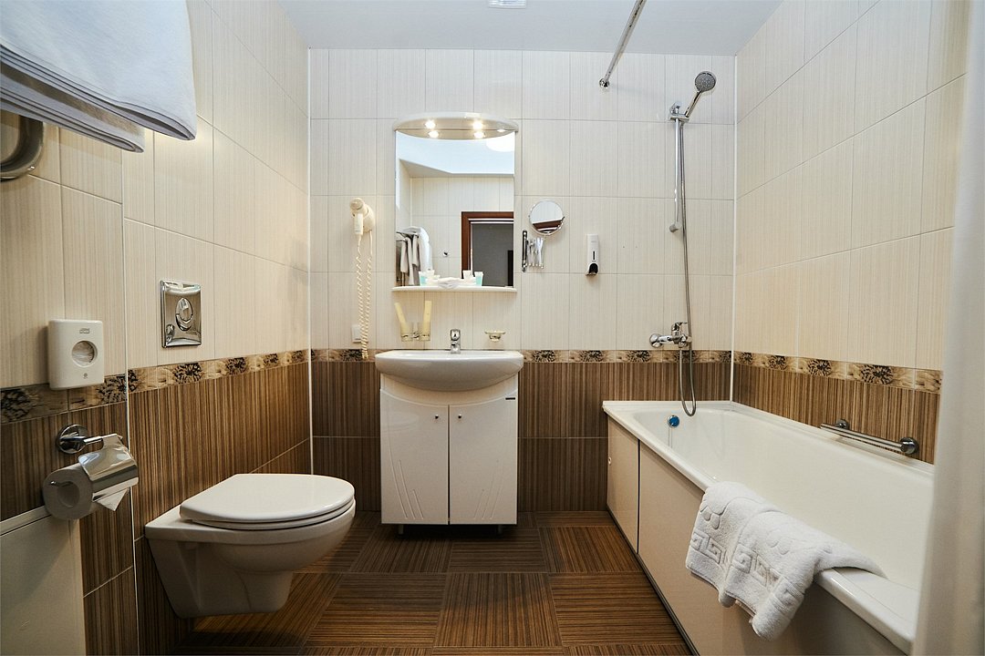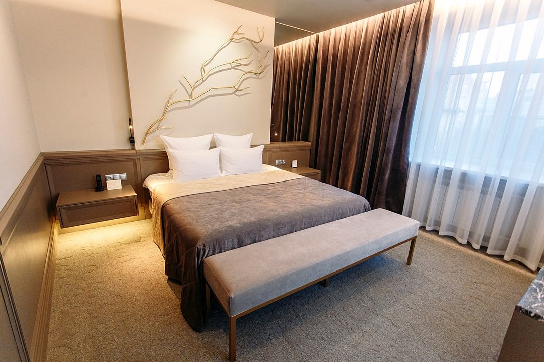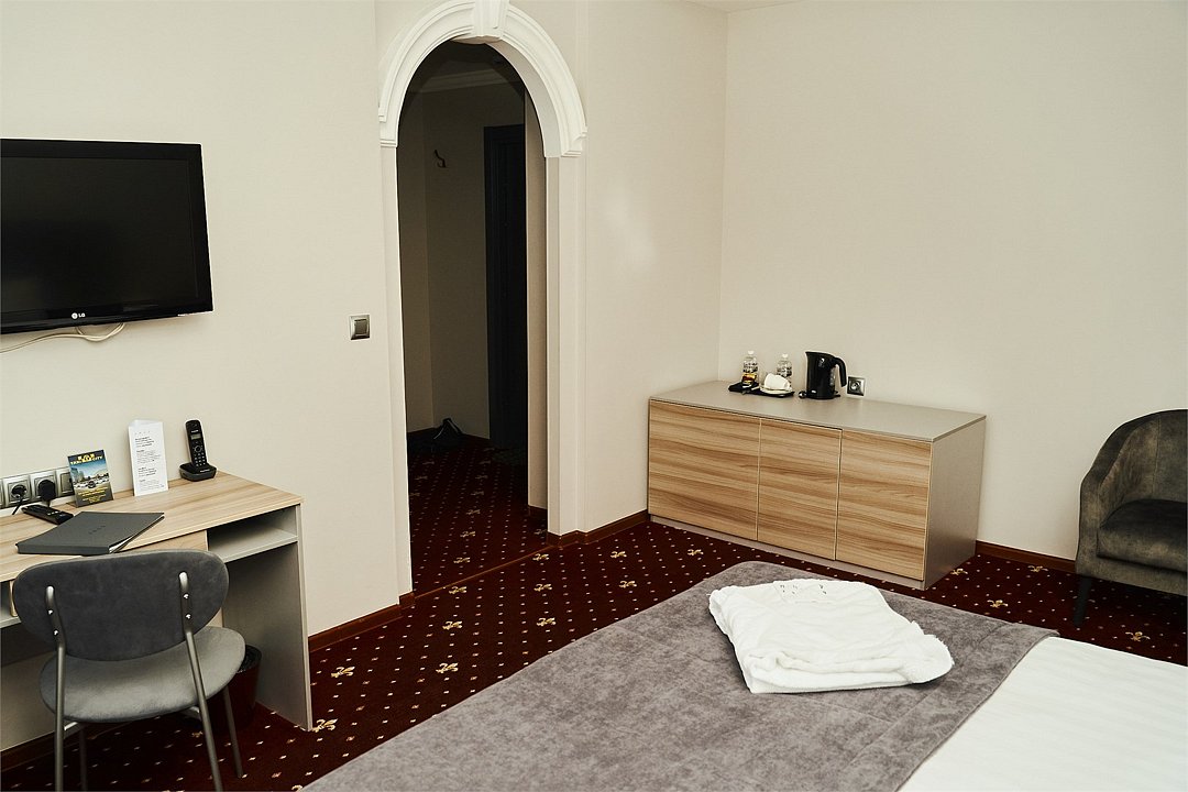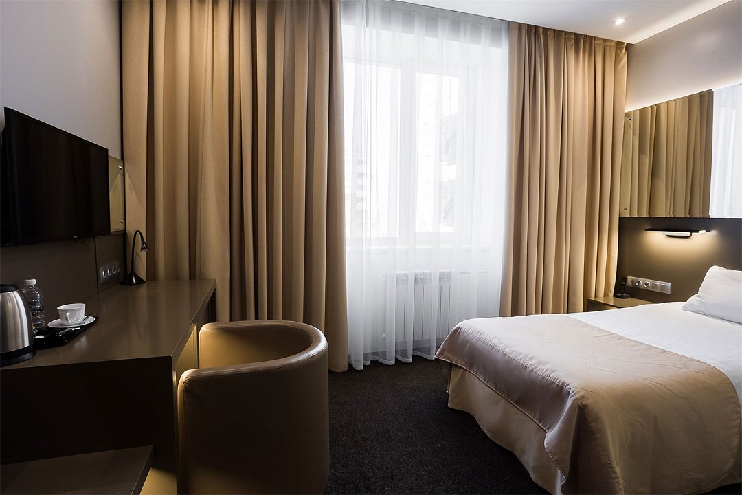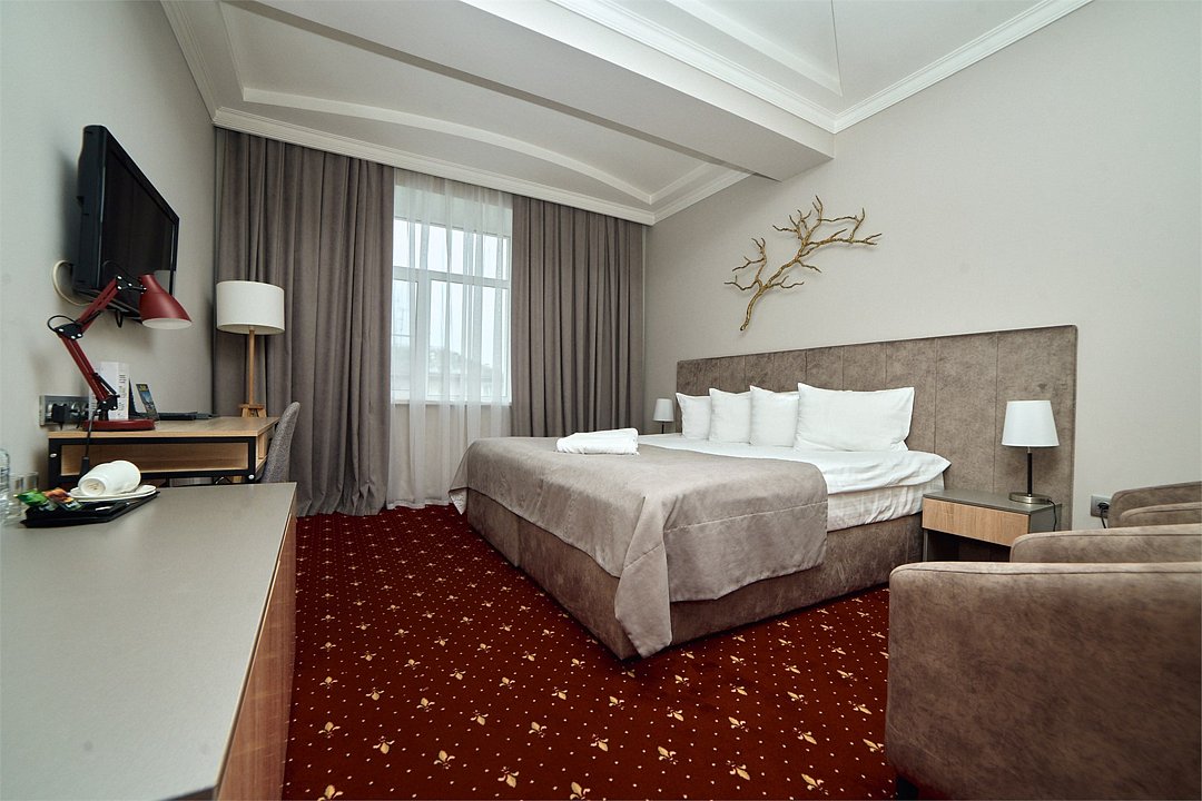 Подходящий вариант для проживания, как одного, так и двух человек. Отличный выбор для тех, кто хочет оставаться в центре города, имея возможность воспользоваться дополнительными услугами отеля. Площадь номера дает возможность комфортно расположиться и отдохнуть после долгого дня. Основное преимущество номера: сочетание всего необходимого с приемлемой ценой, чтобы почувствовать себя, как дома. На этапе бронирования, в зависимости от ваших предпочтений, вы сможете выбрать одну двуспальную кровать, либо две односпальные. Обращаем внимание, что ванные комнаты данной категории не видоизменялись. Ковровое покрытие представлено в двух цветах. Площадь: 25-30 кв.мУслуги и удобства