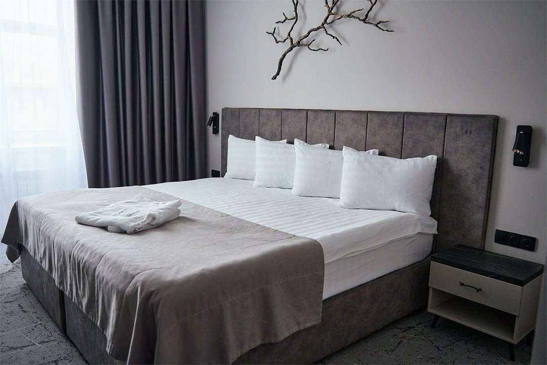 Современный однокомнатный номер с одной двуспальной кроватью или двумя односпальными кроватями после обновленного ремонта. Этот номер воплощение персонализированной заботы о вас, которая соответствует стандартам отдыха. Номер светлый с блекаут системой позволит управлять световым пространством и создавать атмосферу согласно вашим предпочтениям. Откройте для себя возможности дополнительного сервиса от команды отеля "Амур". На этапе бронирования, в зависимости от ваших предпочтений, вы сможете выбрать одну двуспальную кровать, либо две односпальные. Обращаем внимание, что ванные комнаты данной категории представлены в двух вариантах. Один вариант с душевыми, второй с ванными. Площадь: 25-30 кв.мУслуги и удобства