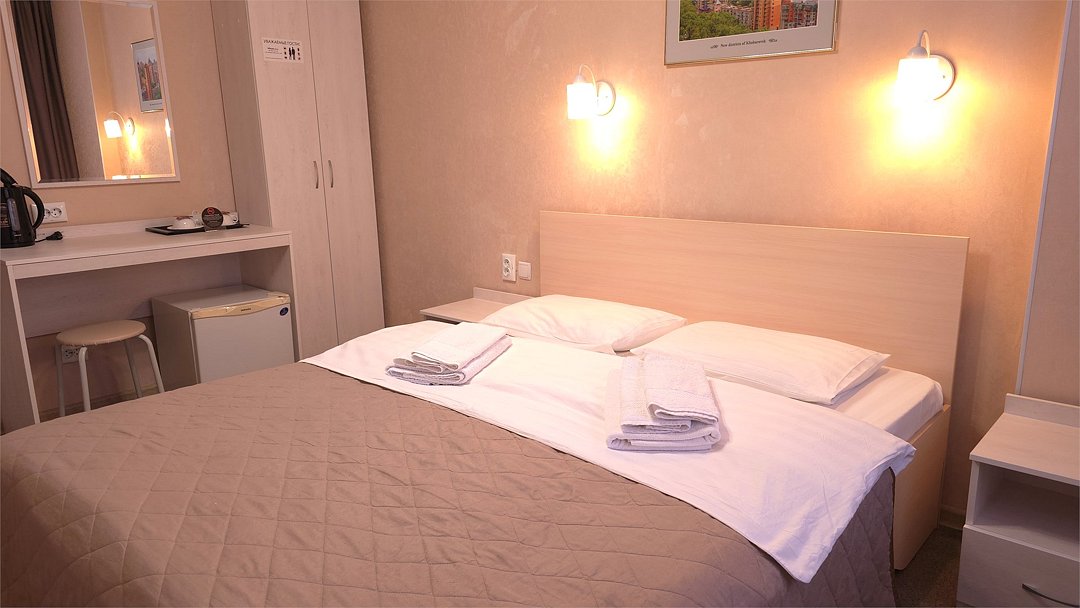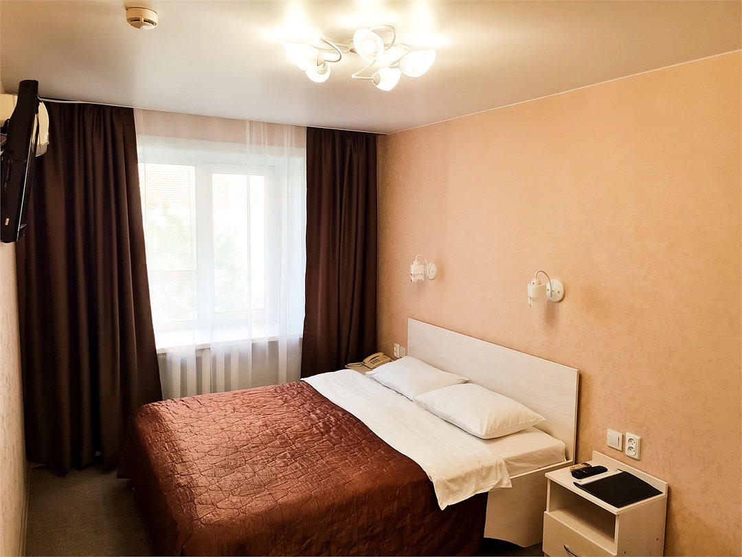 Номер категории "Эконом с двуспальной кроватью" отлично подойдет для проживания двух Гостей.Услуги и удобства