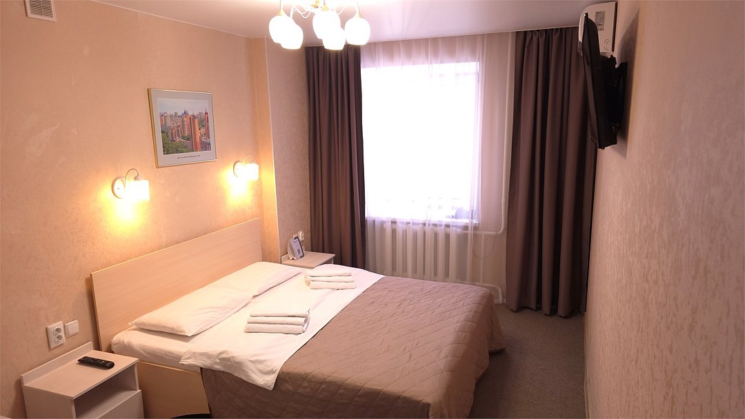 телевизор, Wi-Fi, телефон, кондиционер, фен, система безопасности, утюг, обогреватель, ванная комната, ванна, санузел, водонагреватель, банные полотенца, тапочки, гигиенические средства, двуспальная кровать, гладильная доска, тумбы, стулья, шкаф для одежды, зеркало, звуконепроницаемые стены и окна, чайный набор, обслуживание номеров, информационная карта, меню, чайник, унитаз, раковина, питьевая вода, ковровое покрытие, отопление, душ, вид на город, кулер на этаже, вид во двор, туалетные средства, туалет, цифровое тв, внутренний телефон, телевизор с плоским экраном, мини-холодильник, москитная сеткаВ гостиничном номере