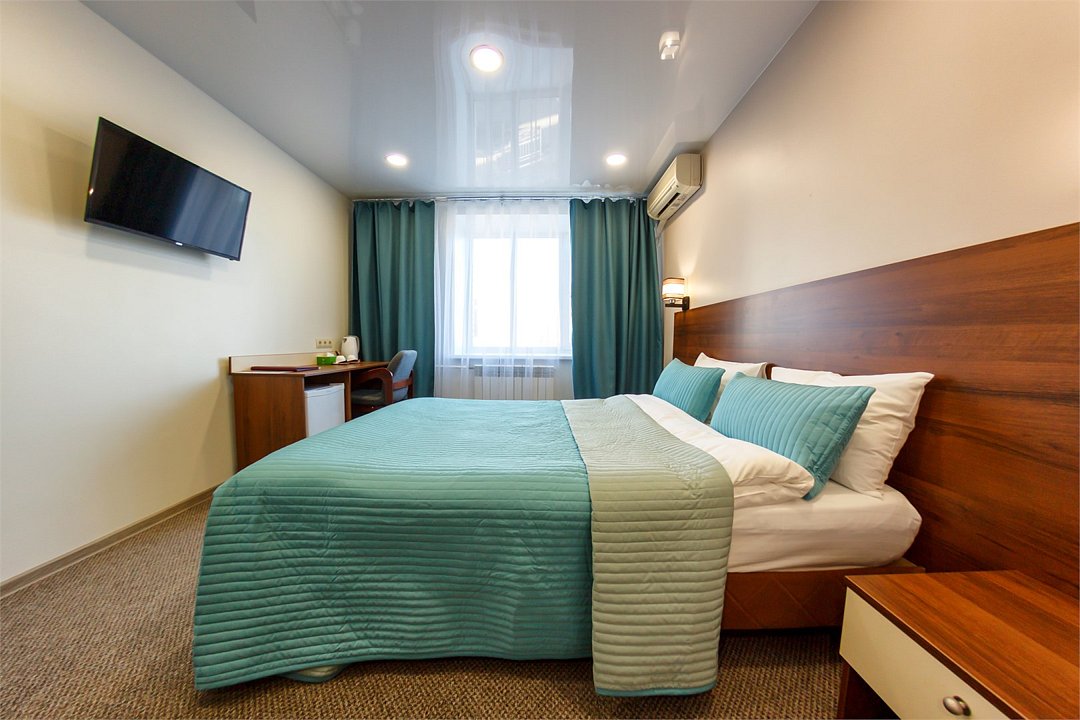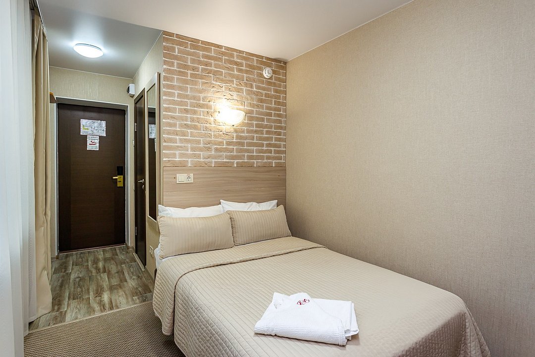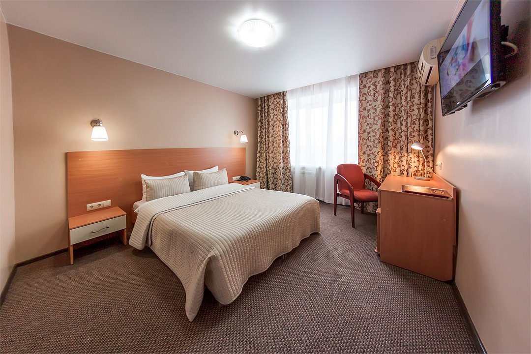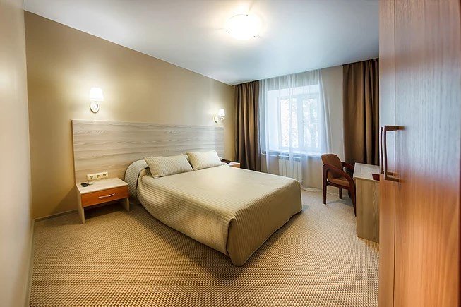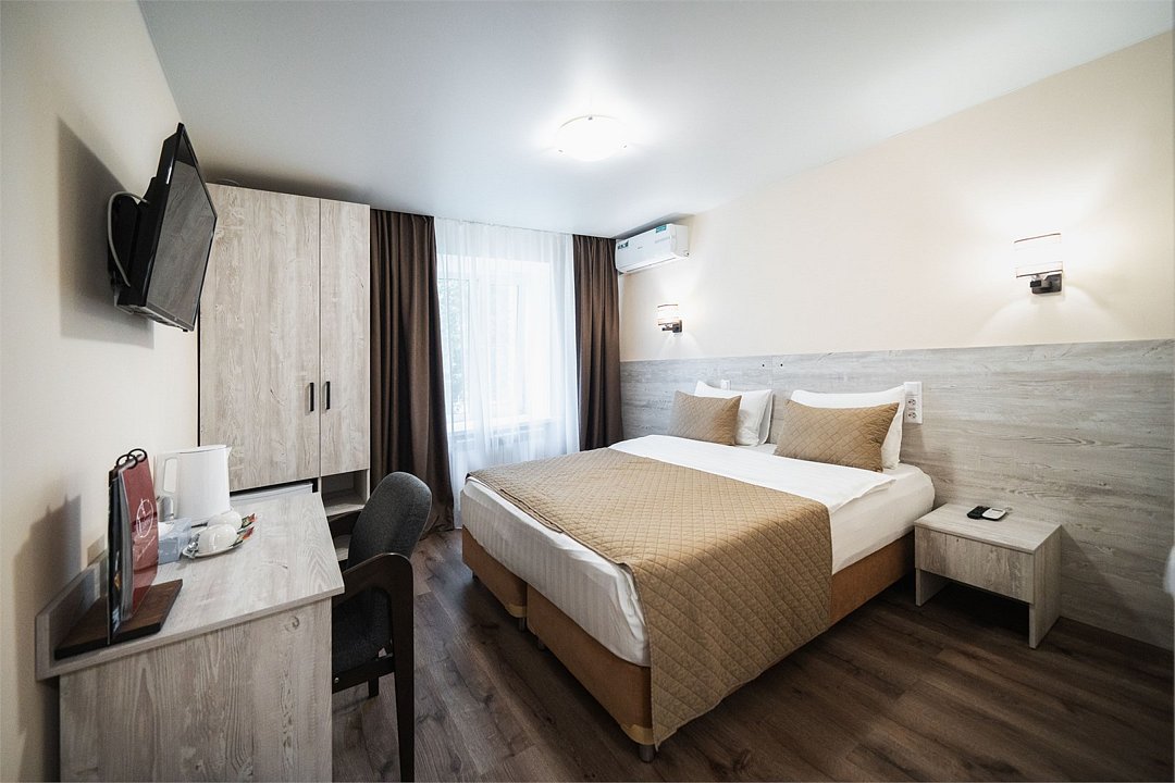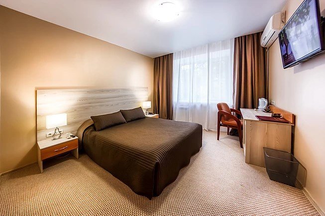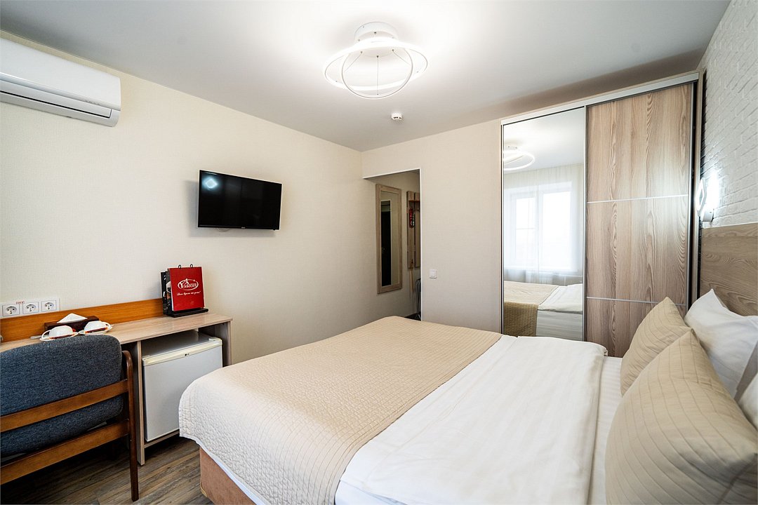 Стандартный номер с одной жилой комнатой и полным санузлом. В номере одна двухместная кровать. По желанию Гостям предоставляются две односпальные кровати.Услуги и удобства