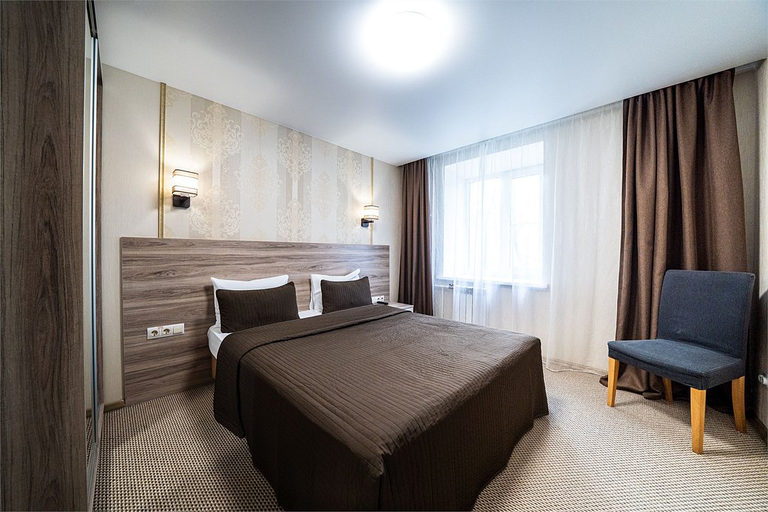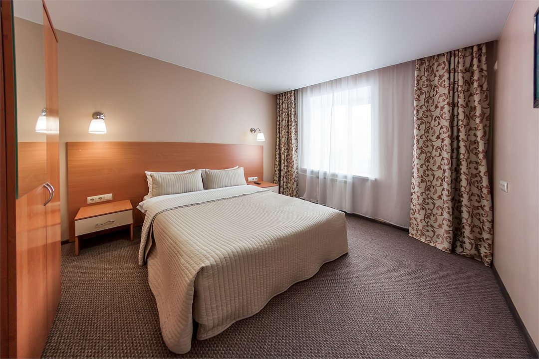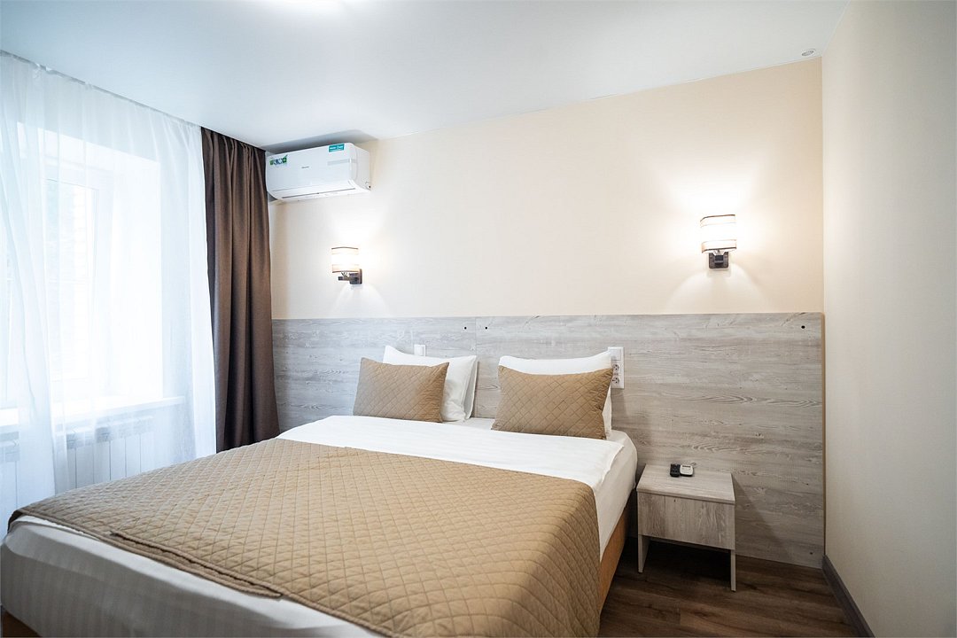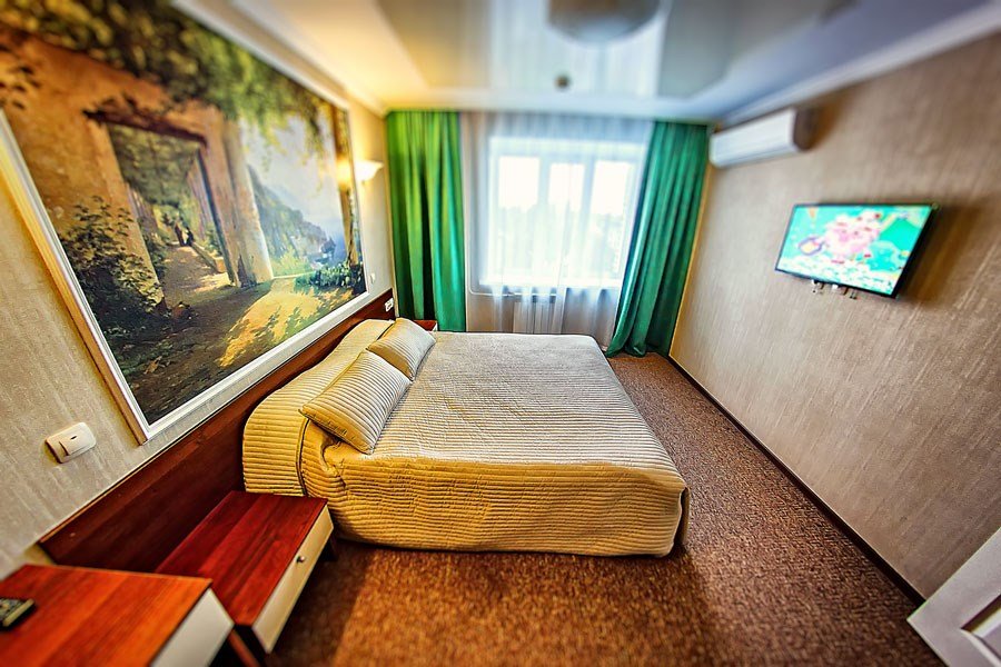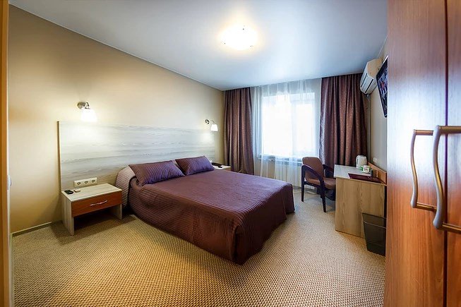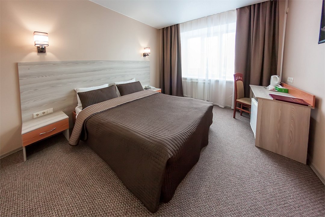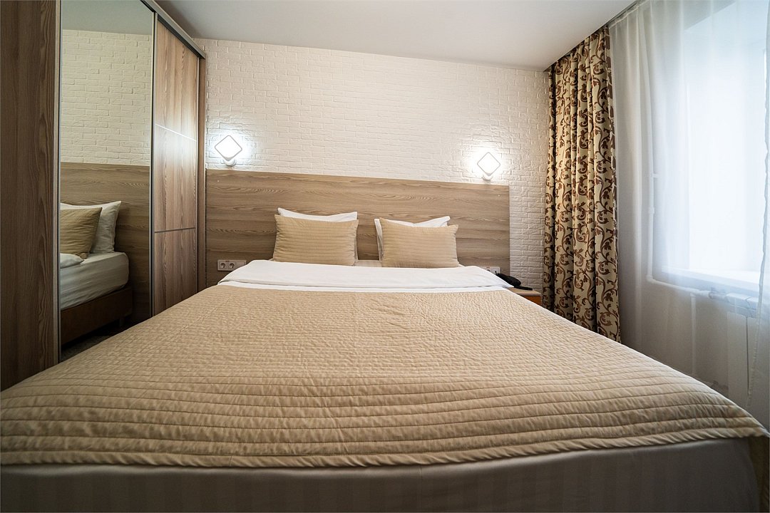 Стандартный номер с одной жилой комнатой и полным санузлом. В номере одна двухместная кровать. По желанию Гостям предоставляются две односпальные кровати.Услуги и удобства