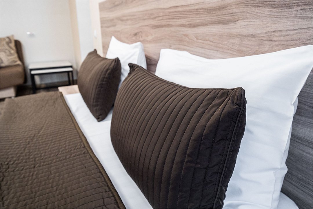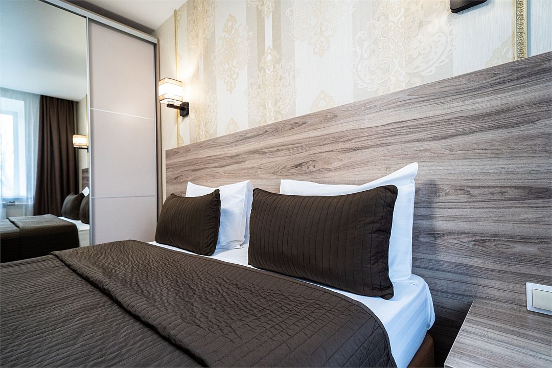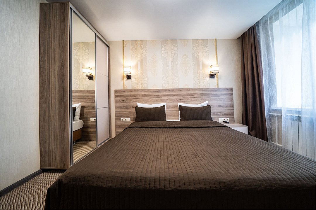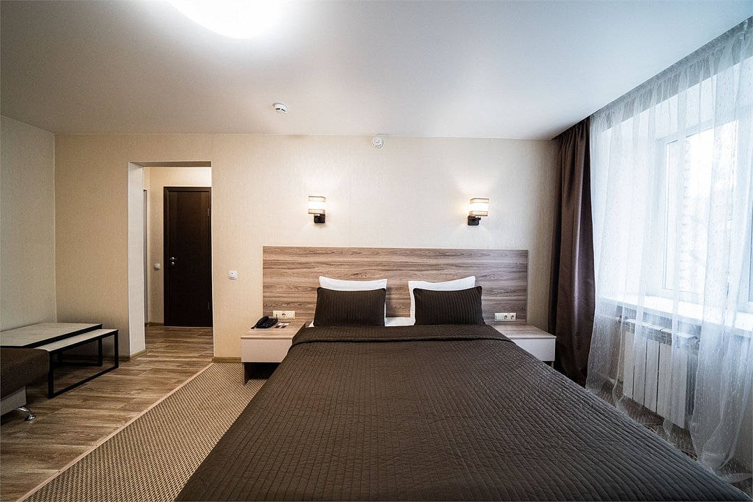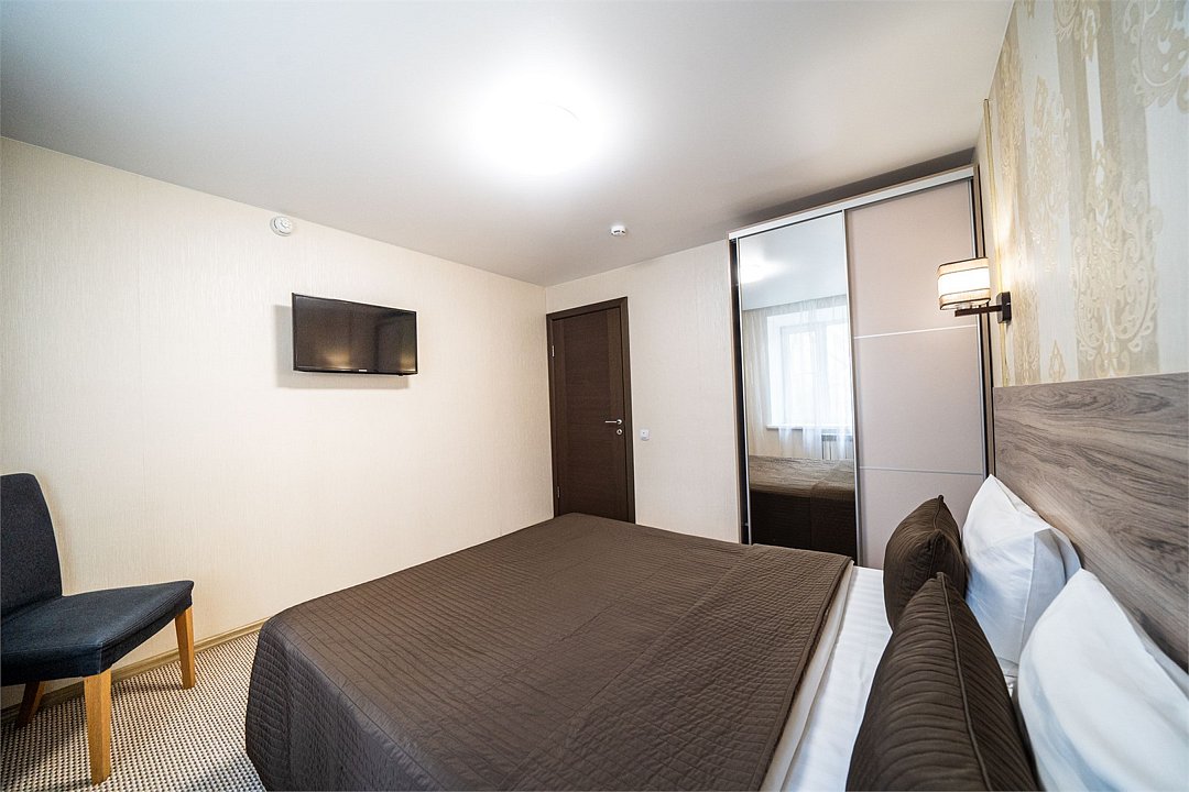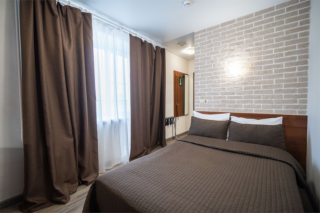 Стандартный номер с одной жилой комнатой и полным санузлом. В номере одна двухместная кровать. По желанию Гостям предоставляются две односпальные кровати.Услуги и удобства