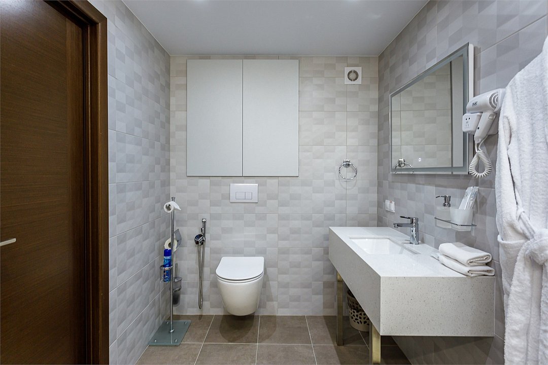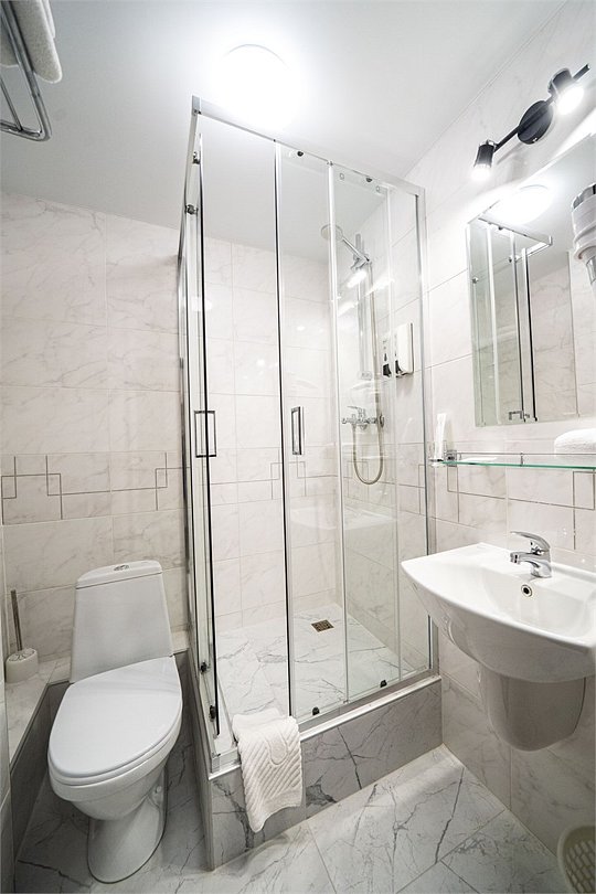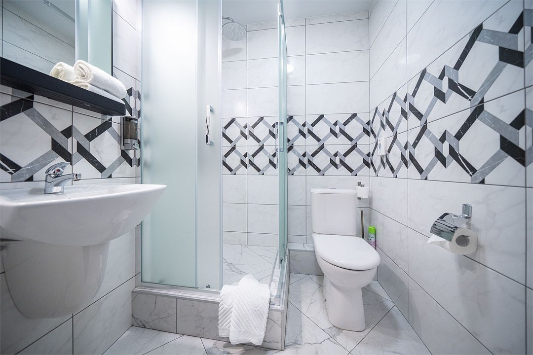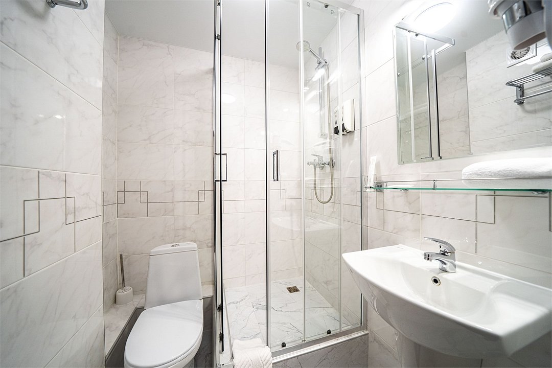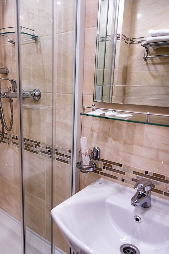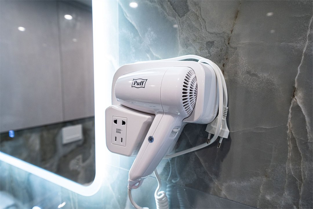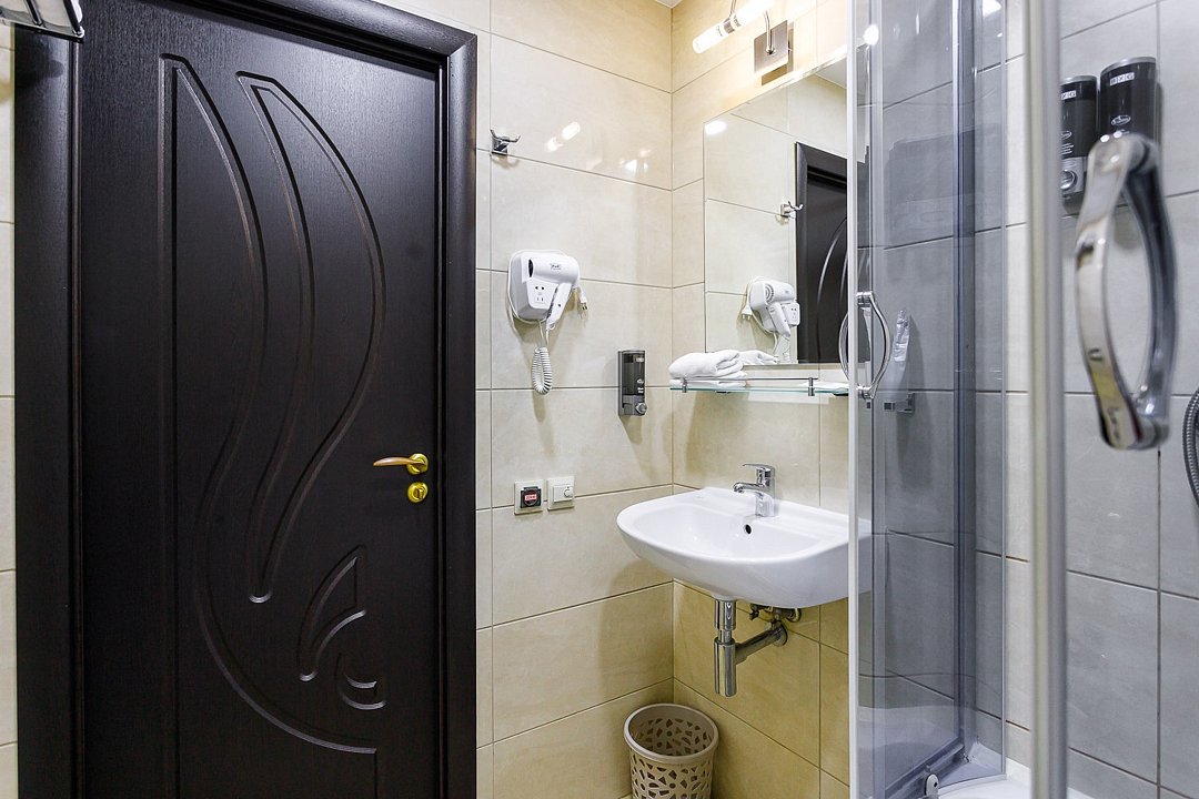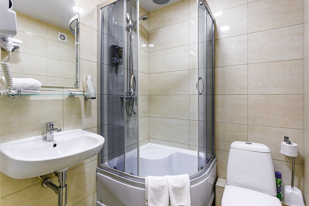 кабельное телевидение, Wi-Fi, кондиционер, светильник, фен, электронные замки, ванная комната, душевая кабина, халаты, банные полотенца, тапочки, гигиенические средства, две односпальные или большая двуспальная кровать, шкаф для одежды, вешалки, багажная тумба, зеркало, чайный набор, обслуживание номеров, чайник, унитаз, раковина, отопление, вид на город, кулер на этаже, стул, стол, тумба, сушилка для белья, внутренний телефон, телевизор с плоским экраном, мини-холодильник, москитная сетка, номер для некурящих, оснащение для гостей с ограниченными возможностями, уборка номера, набор для приготовления чая и кофе, услуги прачечной (платно), вешалки-плечики, шапочка для душа, мыло, прачечная (за дополнительную плату), онлайн-регистрация, можно с питомцамиВ гостиничном номере