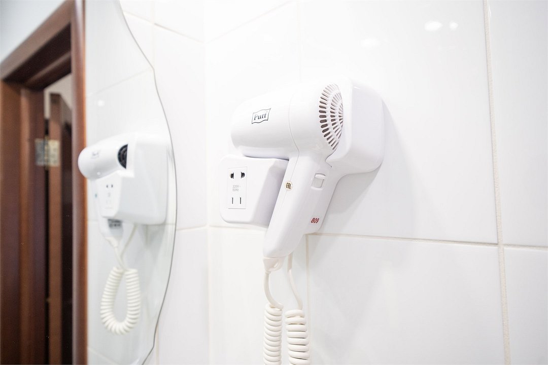 кабельное телевидение, Wi-Fi, телефон, холодильник, кондиционер, светильник, фен, электронные замки, душевая кабина, халаты, тапочки, гигиенические средства, две односпальные или большая двуспальная кровать, тумбы, шкаф для одежды, вешалки, зеркало, чайный набор, обслуживание номеров, чайник, унитаз, раковина, отопление, вид на город, кулер на этаже, китайский канал, вид во двор, стул, стол, тумба, туалетные средства, сушилка для белья, телевизор с плоским экраном, москитная сетка, номер для некурящих, можно с питомцамиВ гостиничном номере