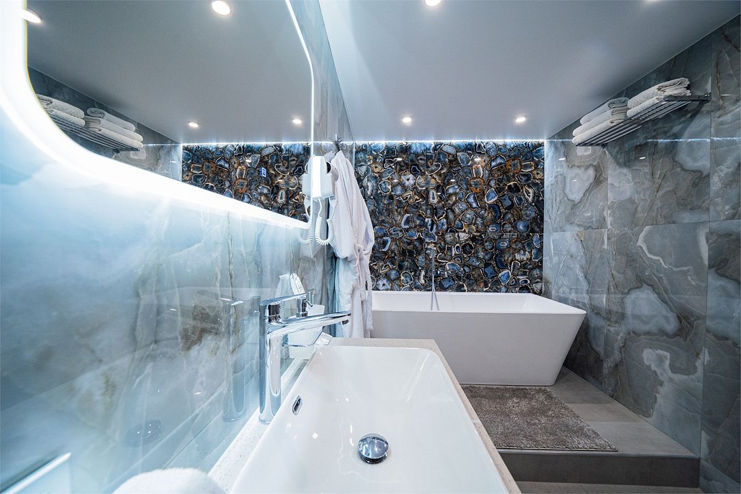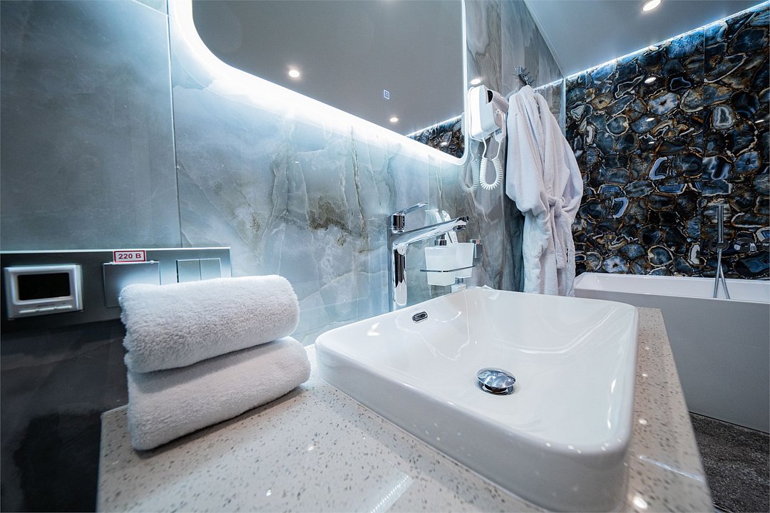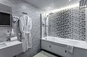 кабельное телевидение, Wi-Fi, телефон, кондиционер, система климат-контроля, светильник, фен, система безопасности, электронные замки, ванная комната, ванна, теплый пол, халаты, банные полотенца, тапочки, гигиенические средства, балкон, двуспальная кровать, тумбы, шкаф для одежды, вешалки, зеркало, чайный набор, обслуживание номеров, информационная карта, меню, чайник, унитаз, раковина, питьевая вода, отопление, вид на город, кулер на этаже, ламинат, стул, стол, туалетные средства, сушилка для белья, внутренний телефон, телевизор с плоским экраном, мини-холодильник, москитная сетка, теплые полы, без питомцевВ гостиничном номере