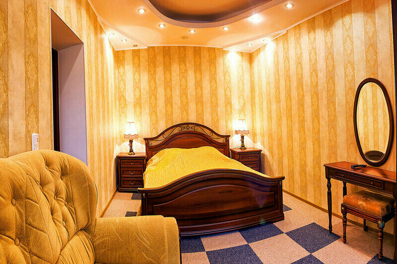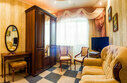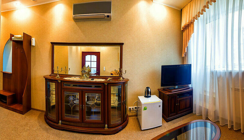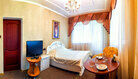 Двуспальная кровать, зона отдыха (стол, два кресла), телевизор, холодильник, чайник, кондиционер, санузел (туалет, раковина, душевая кабина, холодная и горячая вода), выход на балкон. Улучшенный набор мебели.