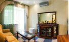 Спальня - двуспальная кровать, платяной шкаф, телевизор; гостиная - мягкая мебель, комод, тумбочка, журнальный столик, холодильник, чайник, кондиционер; санузел (туалет, раковина, душевая кабина, холодная и горячая вода).