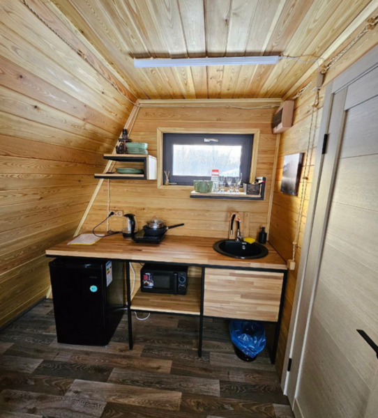 Архитектурный стиль дома, известный как A-frame, обеспечивает проживание для 2-4 человек, предлагая уютное и хорошо оборудованное пространство. Заезд доступен с 15:00, выезд — до 13:00.