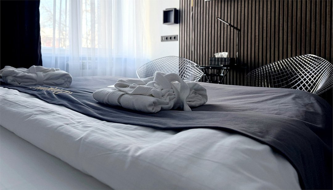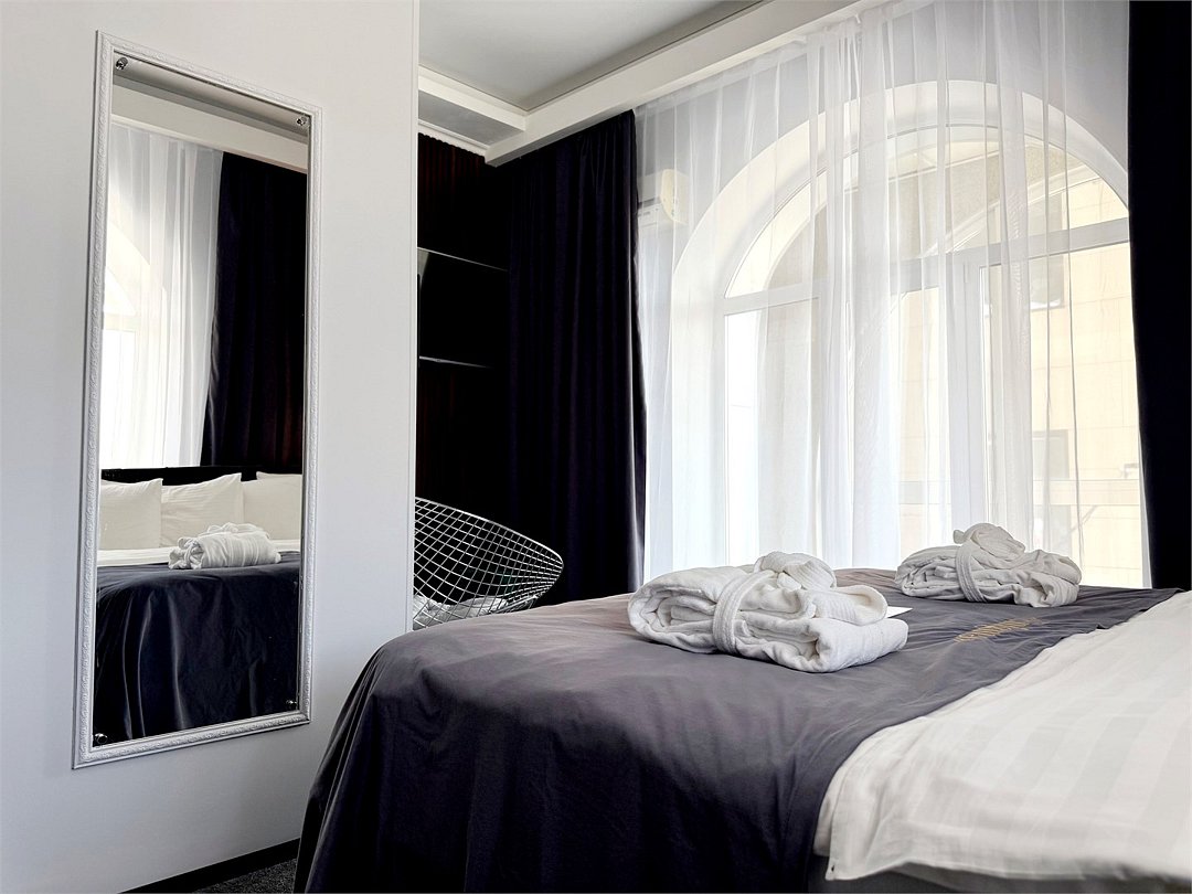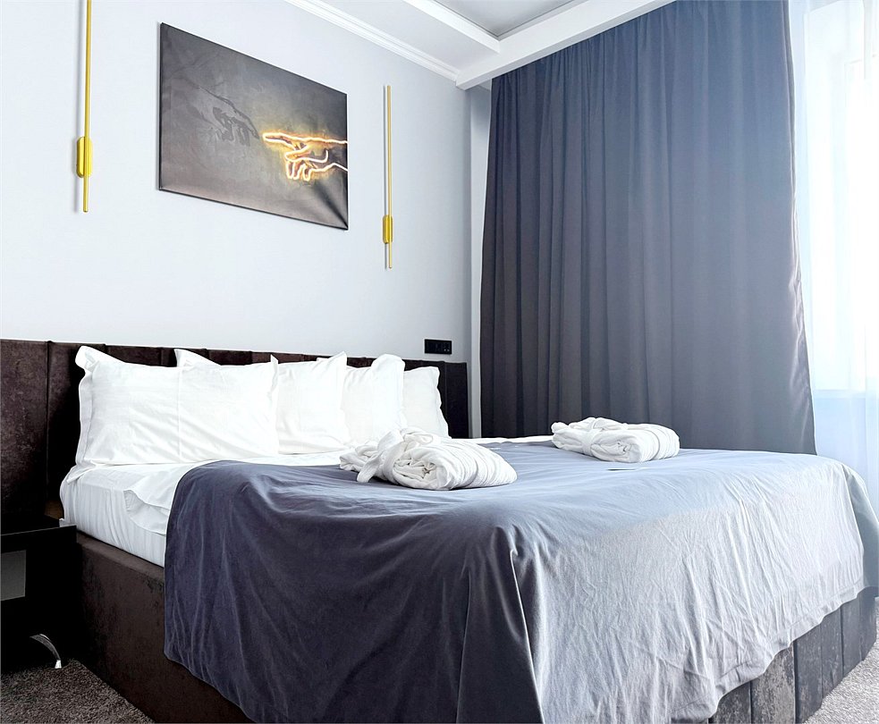 Номер студия - это просторный номер, разделенный на гостиную и спальную зону с двухспальной кроватью. Уютный номер, где есть все необходимое для комфортабельного проживания и отдыха.Услуги и удобства