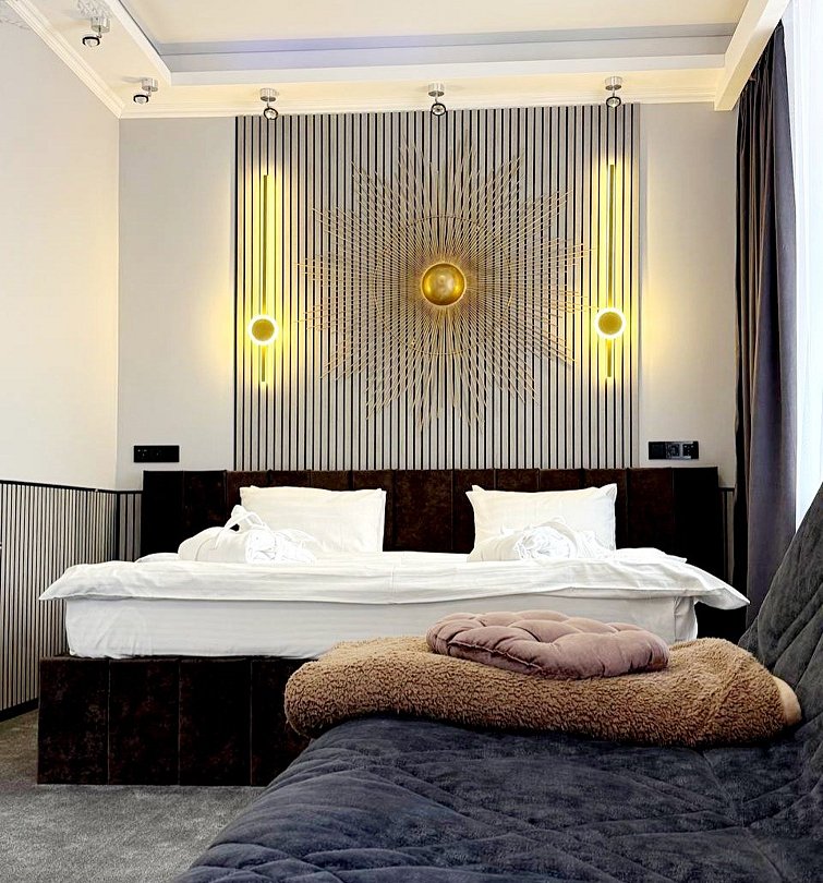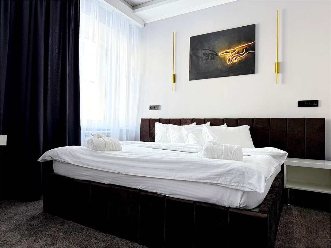 ЛЮКС Гранд- площадь номера является самой большой в нашем отеле, и составляет 42 кв.м. Это оптимальный выбор для гостей, предпочитающих домашний уют и максимальное удобство.Услуги и удобства