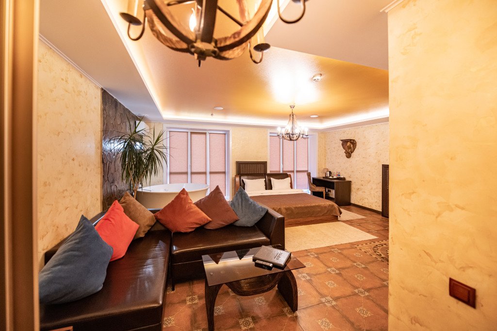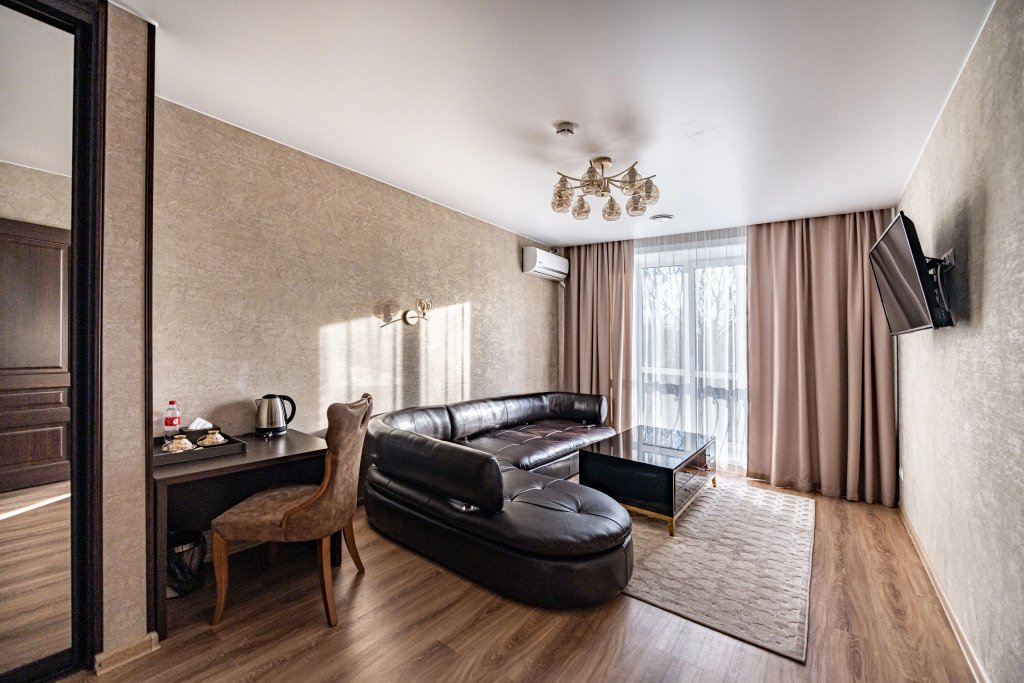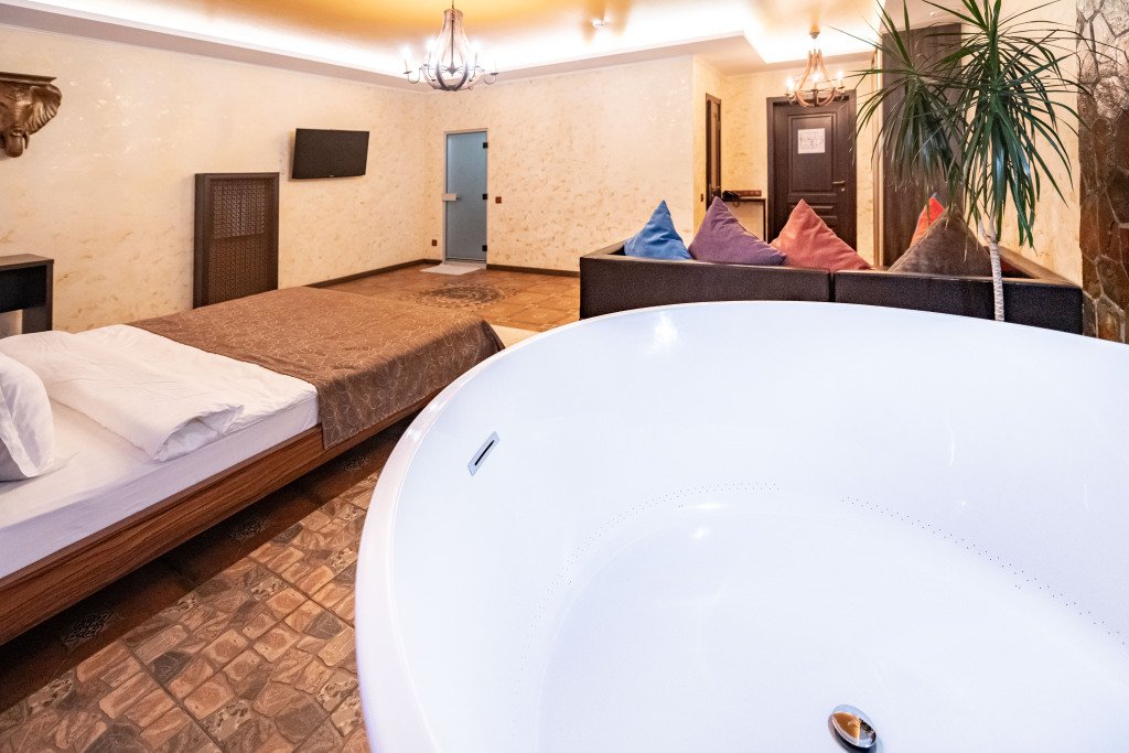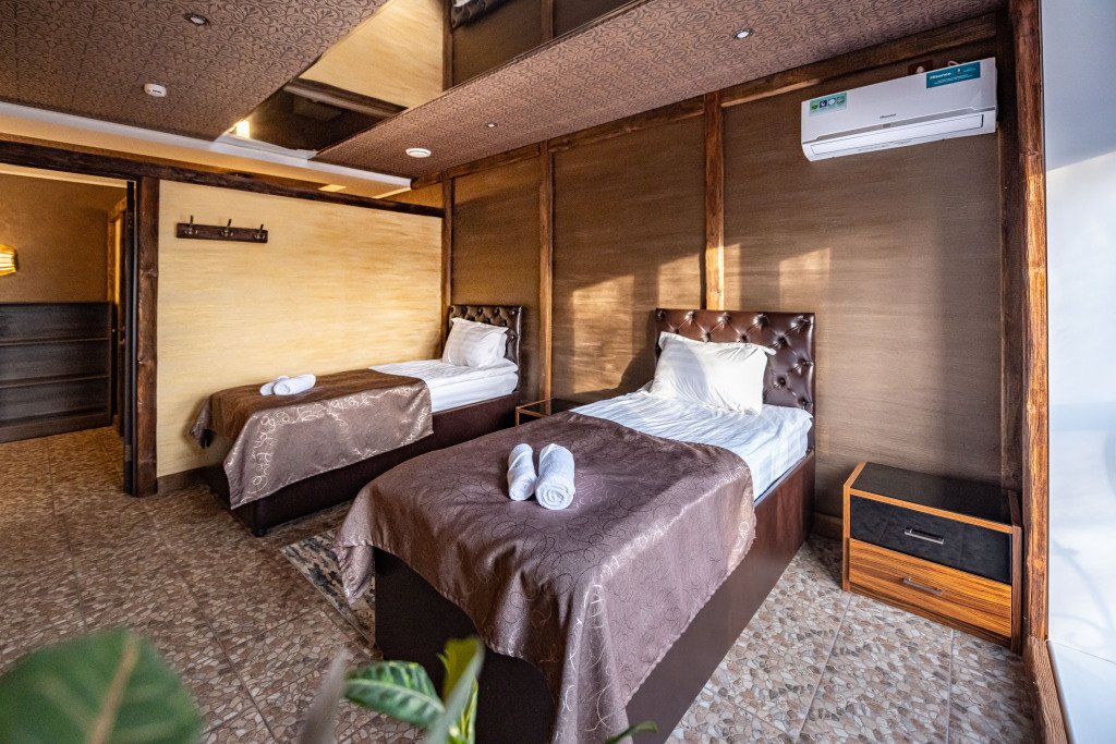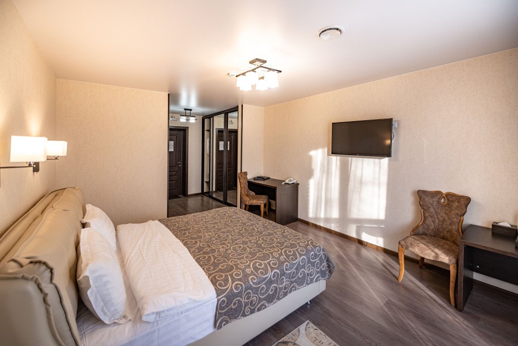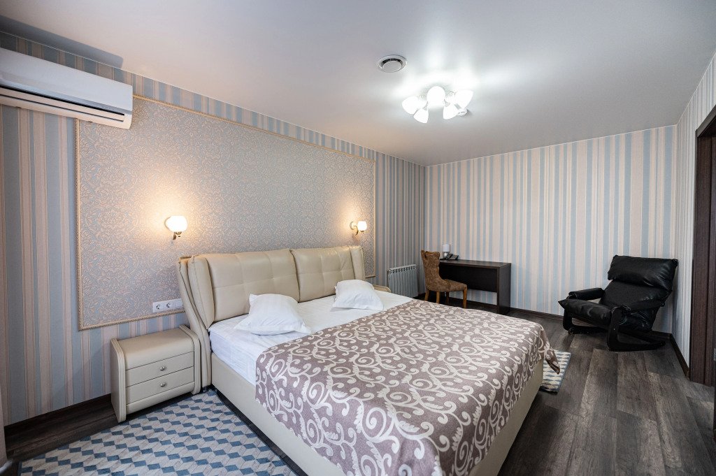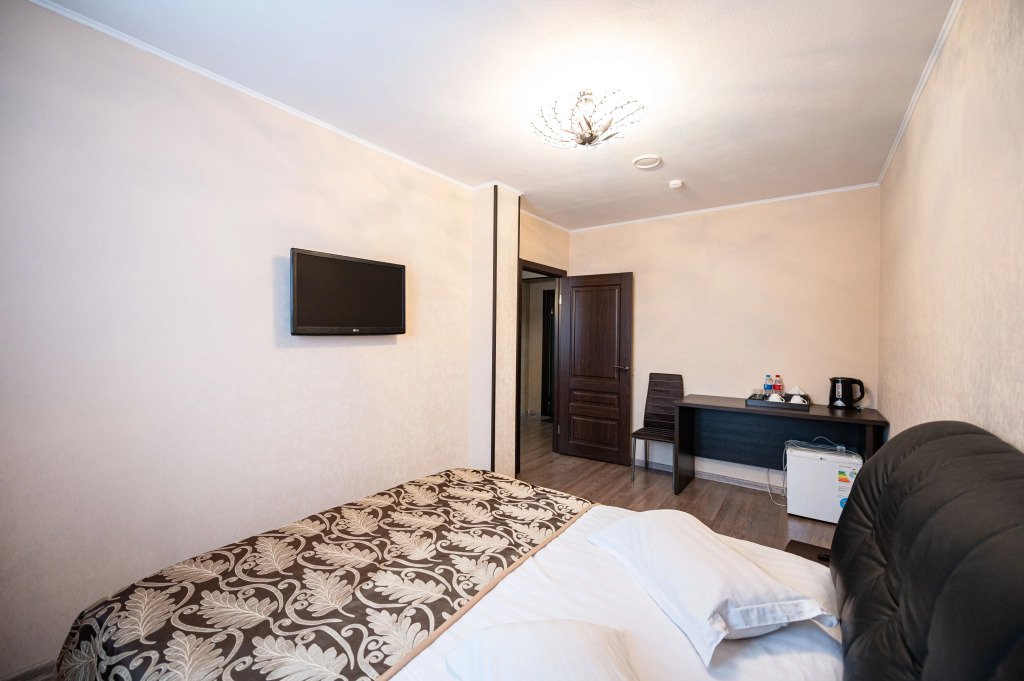 Номерной фонд составляет 18 номеров категорий люкс, полулюкс, стандарт и эконом. Для гостей – бесплатный WI-FI. В каждом номере имеется набор одноразовых мыльных принадлежностей.